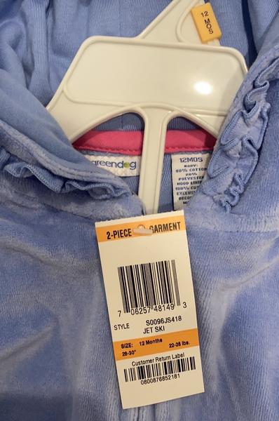 NEW with tags! Blue velour jumpsuit (pants and zip up hoodie) in size 12 months. $15, cash only please.