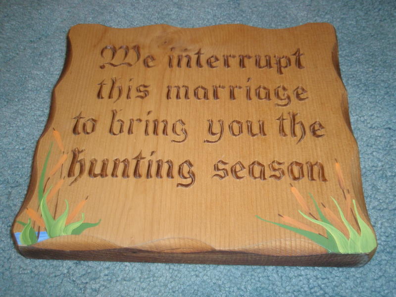 $8 Wood plaque - "We interrupt this marriage to bring you the hunting season”