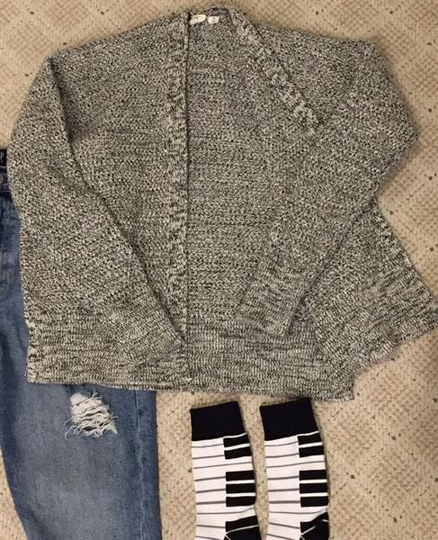 VenmoJeans and sweater are from the Gap. Piano socks are from Two Left Feet. Sweater is a cardigan style, black and white, and size x-small. Jeans are factory distressed. They are 28-30” waist with a shorter 23” inseam, so they hit above the boot. Cute, cozy outfit in excellent, clean condition that is from a smoke/pet free home.