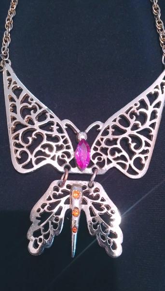 Nice large 14.5" long golden butterfly necklace with new in the package golden hoop earrings. The pictures make it look silver, but it's a gold color. Text is best Cash or Venmo
