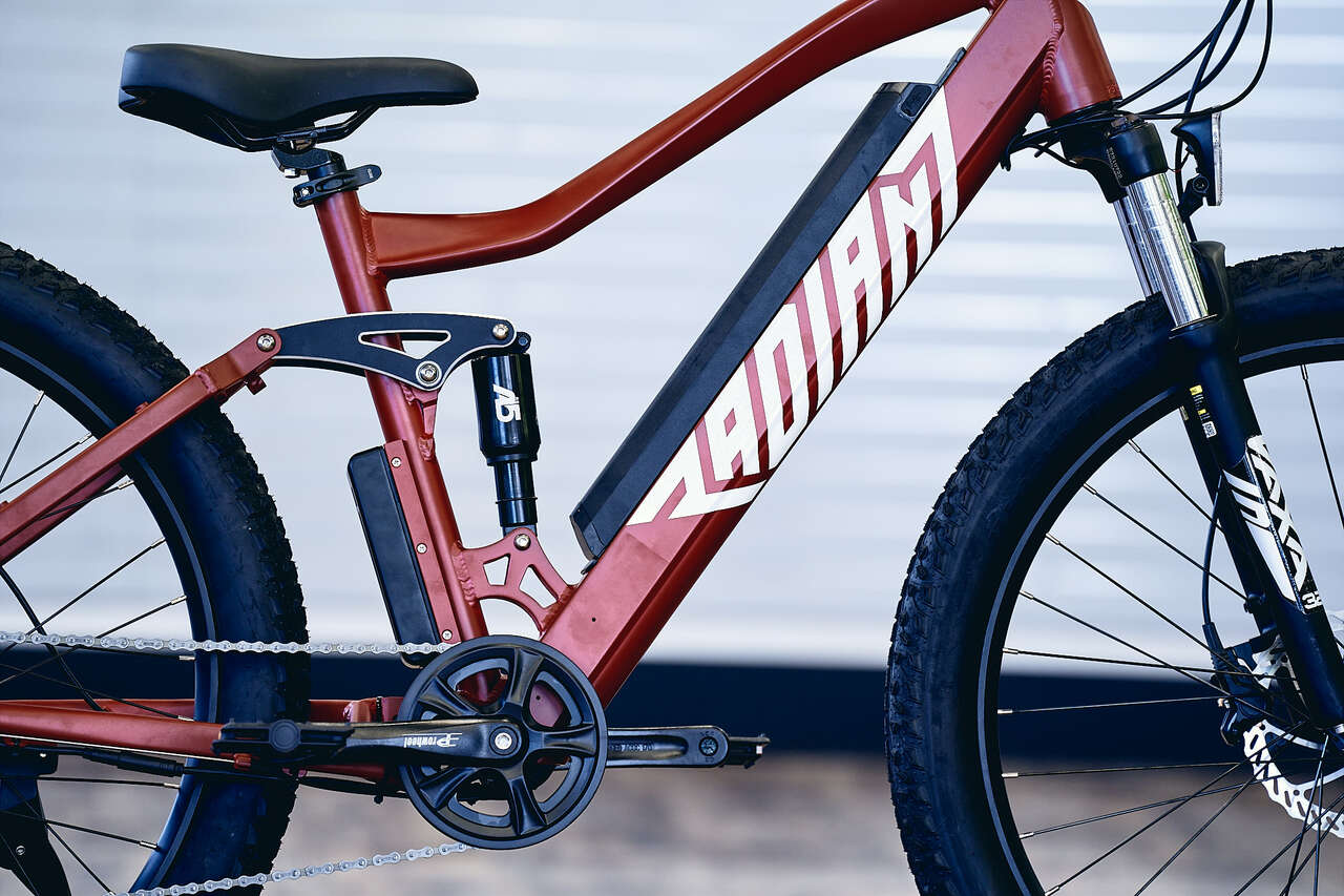 ON SALE! This electric mountain bike can go anywhere, do anything, and do it with full-suspension comfort. The new Radiant Trail FS+ EMTB is both rugged and comfortable for the kind of versatility you want in an e-bike. Designed for safety with the Tektro Auriga dual piston hydraulic brakes this bike will stop fast at all speeds and in all conditions With 3” plus size 27.5 Kenda Havoc tires you have total control with superb traction cornering in all types of terrain. This awesome ebike is perfect for off-road adventures, weekend spins around the neighborhood, and everything in between. Take a test ride today at Electrify Bike Company, contact us for details. Call or text 801-997-0550. Regular retail price: $1899, Sale price $1195! We've got ebikes! Electrify Bike Co. 3961 W 9000 S, Suite H, West Jordan, UT 84088 Text 801-997-0550 RADIANT Trail FS+ SPECIFICATIONS: MOTOR: 36V/350W Rear Motor FRAME: 6061 Aluminum Alloy BATTERY CAPACITY: 36V10.4Ah Lithium-Ion Battery BATTERY RANGE: 30 Miles BATTERY CHARGING TIME: 4 hours THROTTLE: Thumb Throttle DISPLAY: LCD HEADLIGHT: Front LED Headlight TAILLIGHT: YES RIMS: 27.5 inch Black Alloy TIRES: Kenda Havoc 27.5x 3.0 tires GEAR SHIFTING: Shimano ACERA 7-Speed SHIFTER: SHIMANO ACERA 7-speed SPROCKET: 36T chain-wheel crank BRAKES: TEKTRO Auriga Hydraulic disc Brakes HD-M290 HANDLEBAR: Comfort MTB, 680mm SADDLE: Comfort MTB Saddle BOX DIMENSIONS: (cm) 172L x 33W x 83H