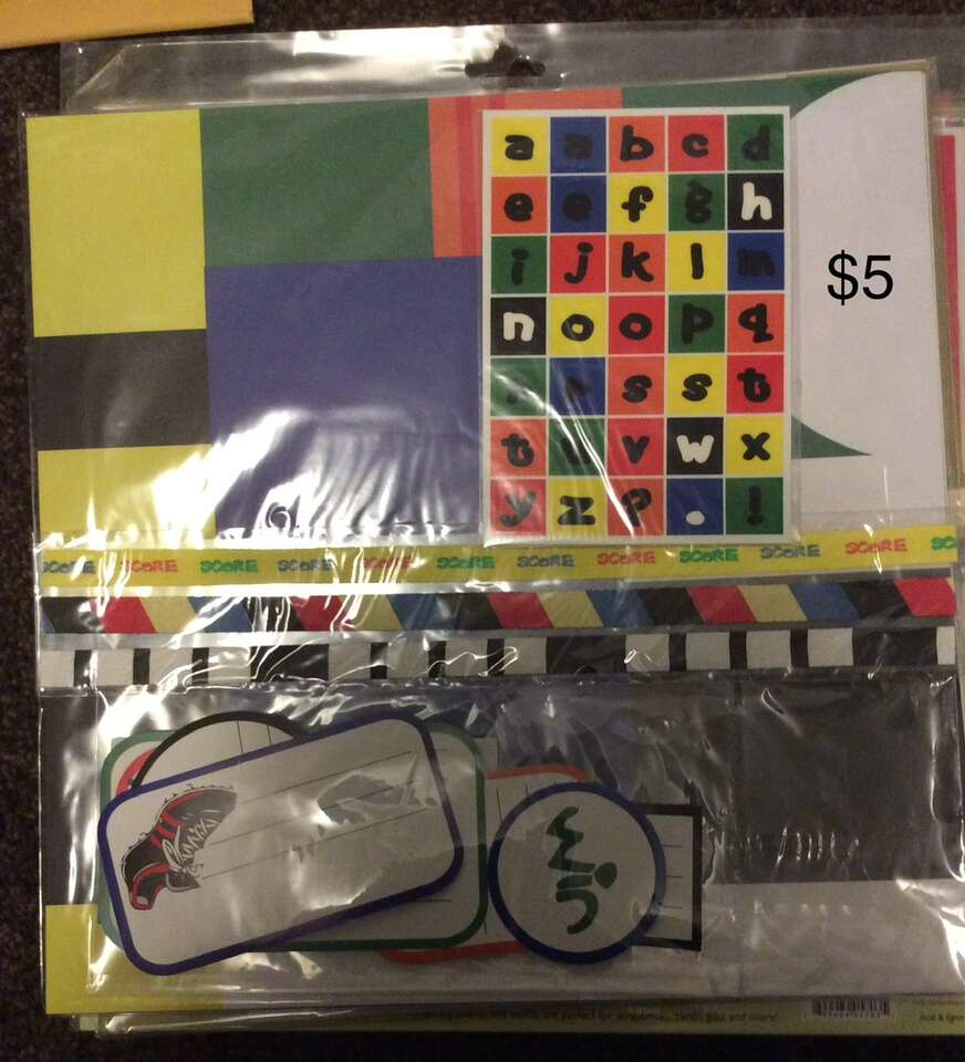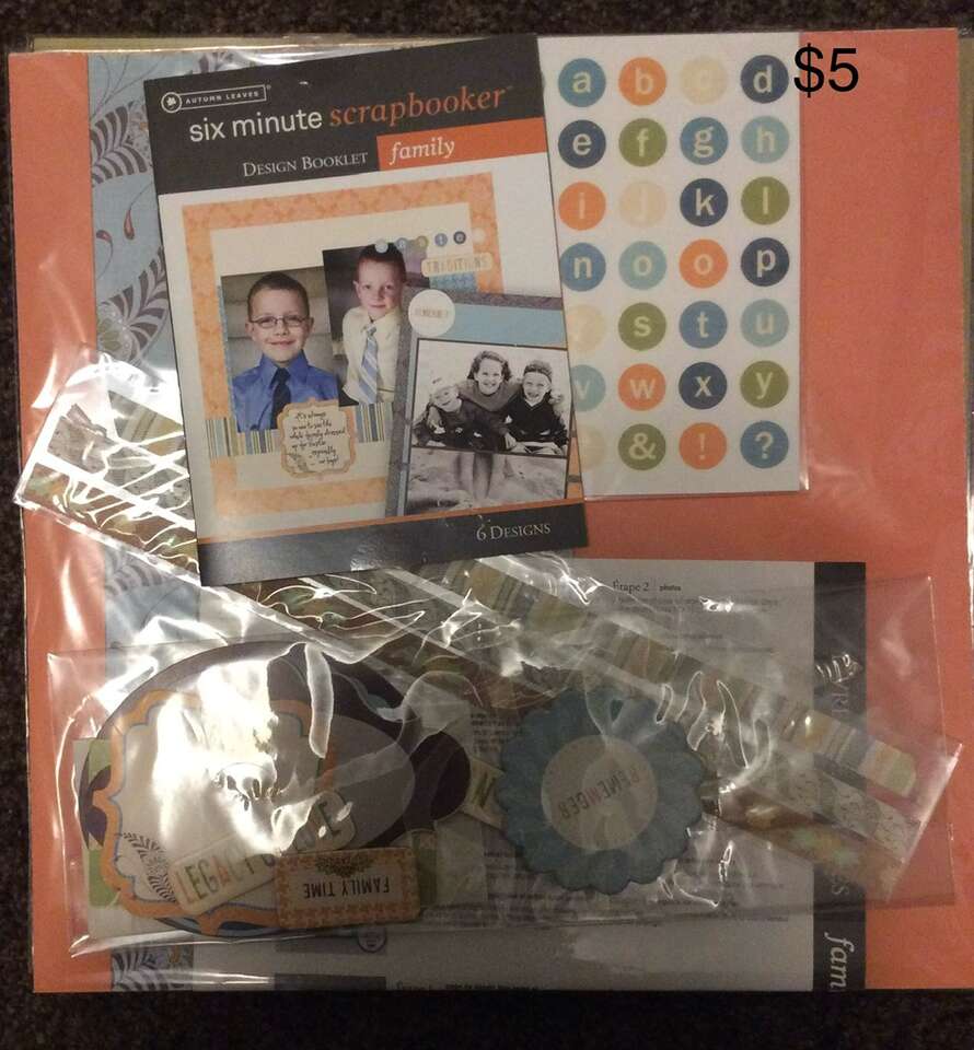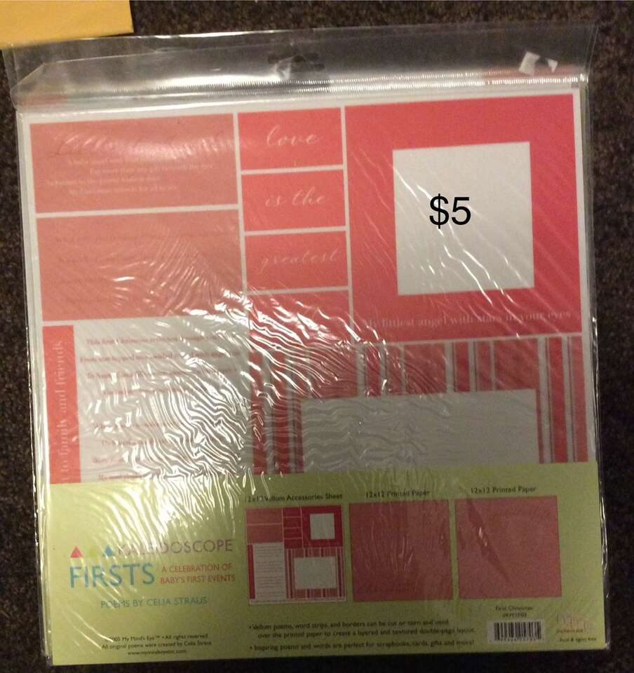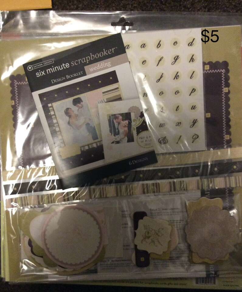 10 sheet protectors 12x12 acid free $3 Variety of flowers in a variety of colors for crafting or scrapbooking $5 Chatterbox jumbo genie value pack for journaling $10 Scrapbook papers. There is a group of 4 partial packages for $3. other are $2, $4, $5 Scrapbook page kits $5 Rubber stamps $2 Rubber stamps - $8 Christmas Specialty paper $2 Sizzix Premium Crease Pad $5 Green 12x12 scrapbook $10 8x8 cream scrapbook $10 Cash only.