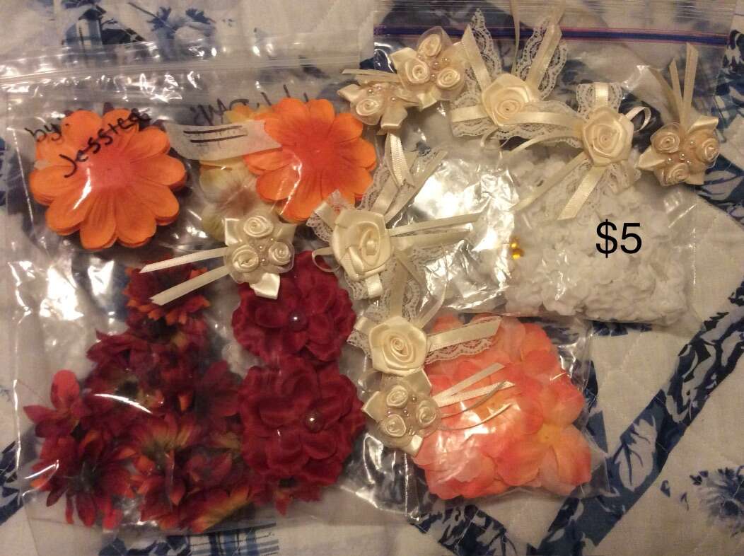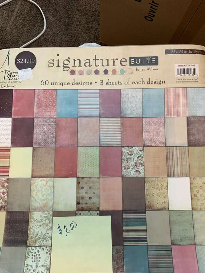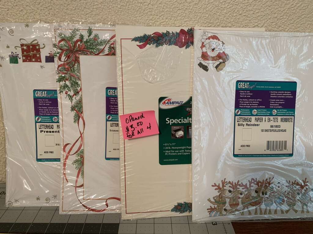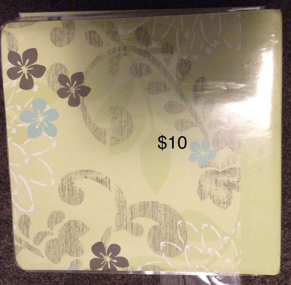 10 sheet protectors 12x12 acid free $3 Variety of flowers in a variety of colors for crafting or scrapbooking $5 Chatterbox jumbo genie value pack for journaling $10 Scrapbook papers. There is a group of 4 partial packages for $3. other are $2, $4, $5 Scrapbook page kits $5 Rubber stamps $2 Rubber stamps - $8 Christmas Specialty paper $2 Sizzix Premium Crease Pad $5 Green 12x12 scrapbook $10 8x8 cream scrapbook $10 Cash only.
