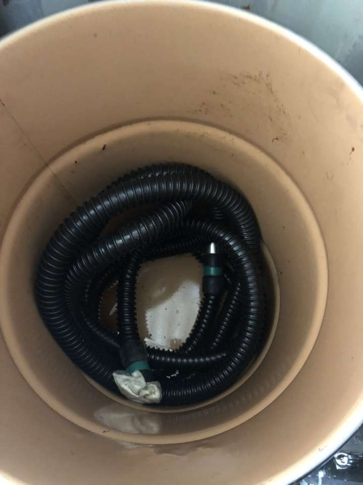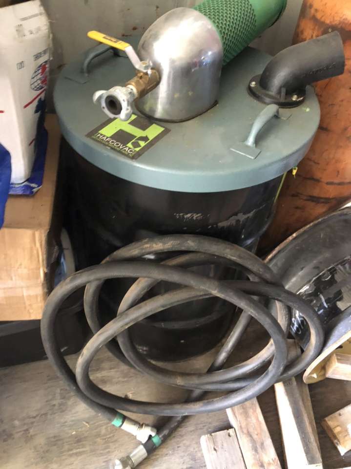 Used once, as new. Intrinsically safe vacuum. No electricity needed. Compressed air runs the air motor. Air hose, 1 1/2” suction hose. Unused filter and sock