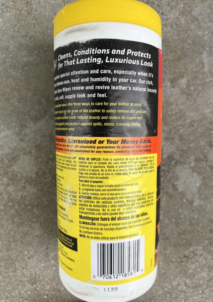 • Leather care wipes - many have been used, but several remain (and need to be re-moistened)