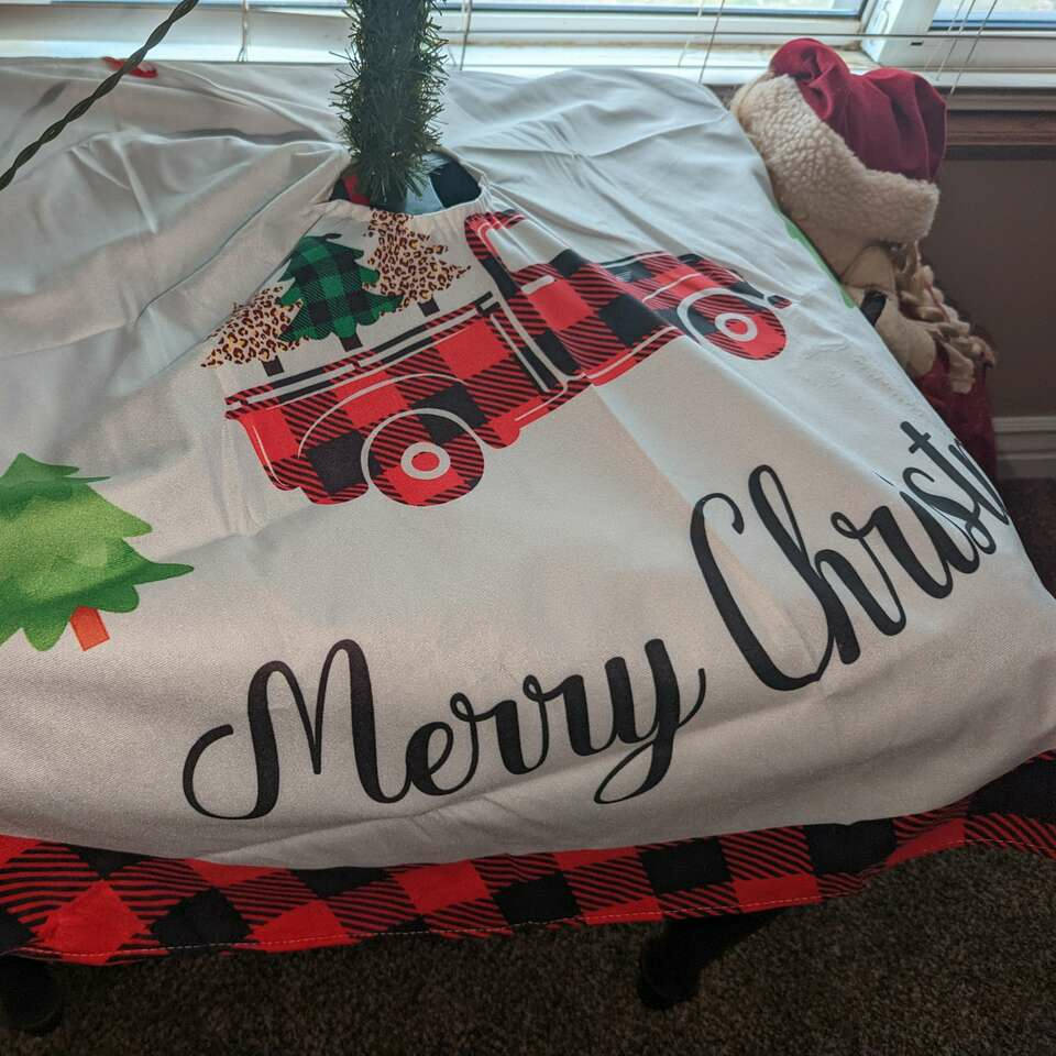 Red Buffalo Rustic Truck Tree Skirt $10 Brand New Size: 48 inches Has a Silk feel to it.