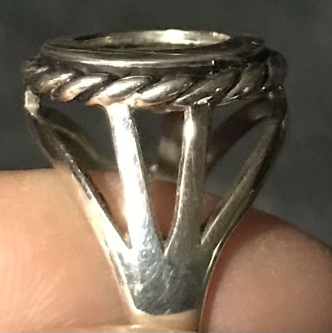 Size 8.5 Treasure design is inspired by the 1622 shipwreck treasure of the Nuestra Senora DeAtocha Re-created using “actual” TREASURE copper, and the finest domestic sterling silver available. Half Reale Copper Coin in Silver ring.