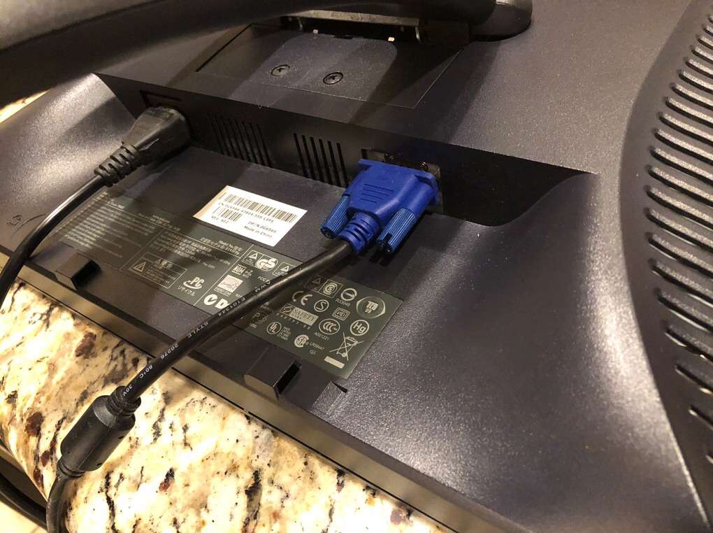 This unit will come with a power cord AND VGA cord for immediate hookup to your system.