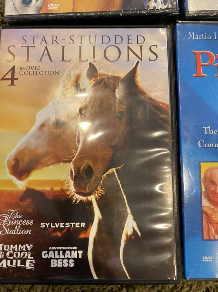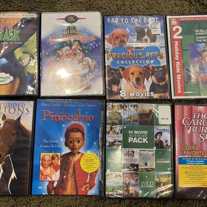 These titles are all brand new unopened DVDs. $1.50 each or best offer. No smoking or pets in our home. Thanks for looking. Titles include All Dogs Christmas Carol, Bad to the Bone, All Dogs Christmas Carol and Christmas Carol Movie, Star Studded Stallions, Pinocchio, 10 Movie Adventure Pack, Carol Burnett Show.