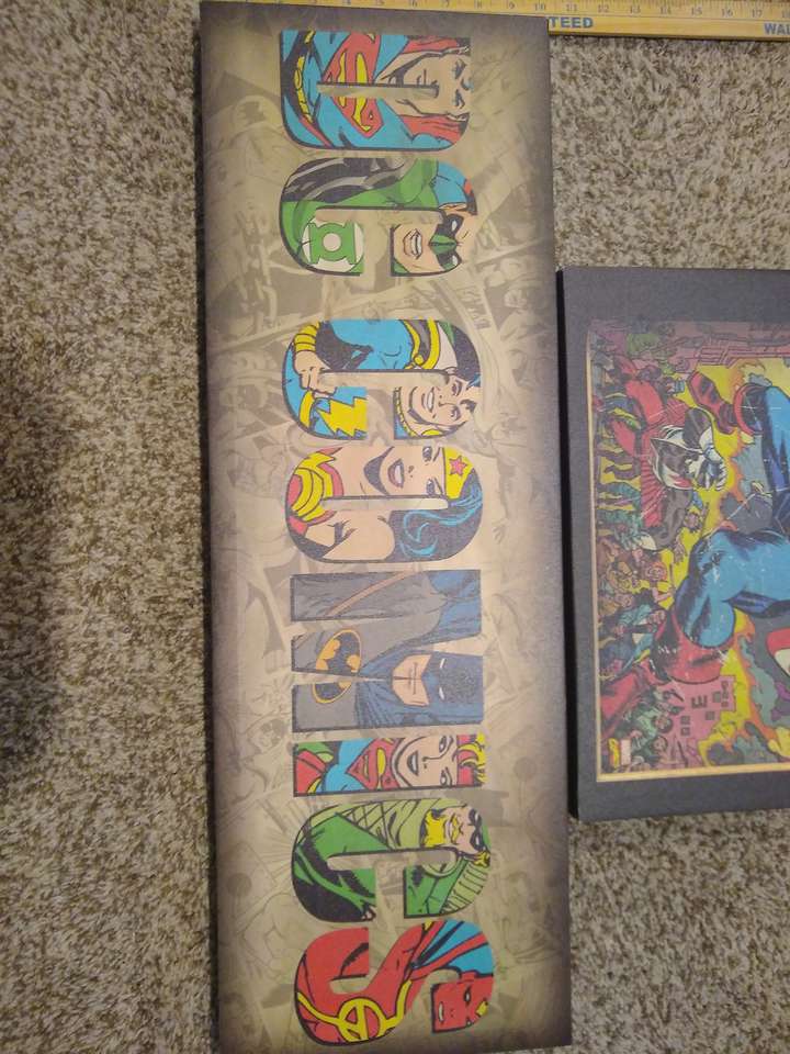 Marvel comics Captain America canvas 20 in by 16 in. Excellent condition. DC comics canvas 30 in by 10 in. Excellent condition.