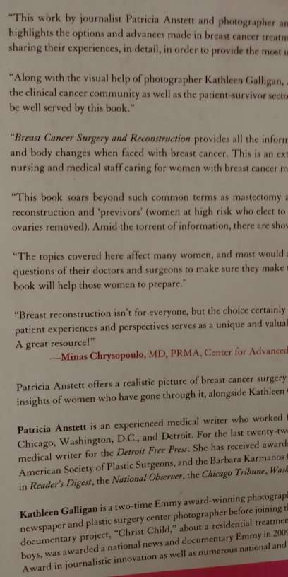 Cancer Surgery And Reconstruction softcover book. What's Right for You, by Patricia Anstett. Text is best Cash