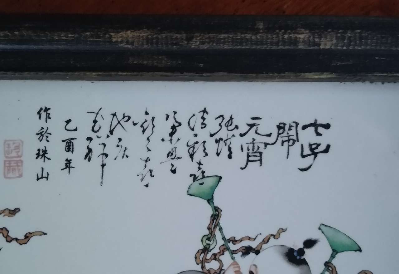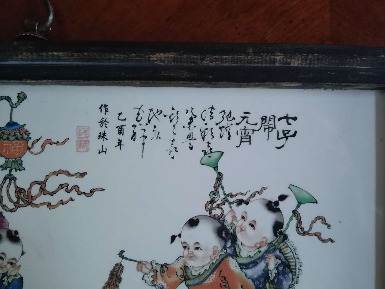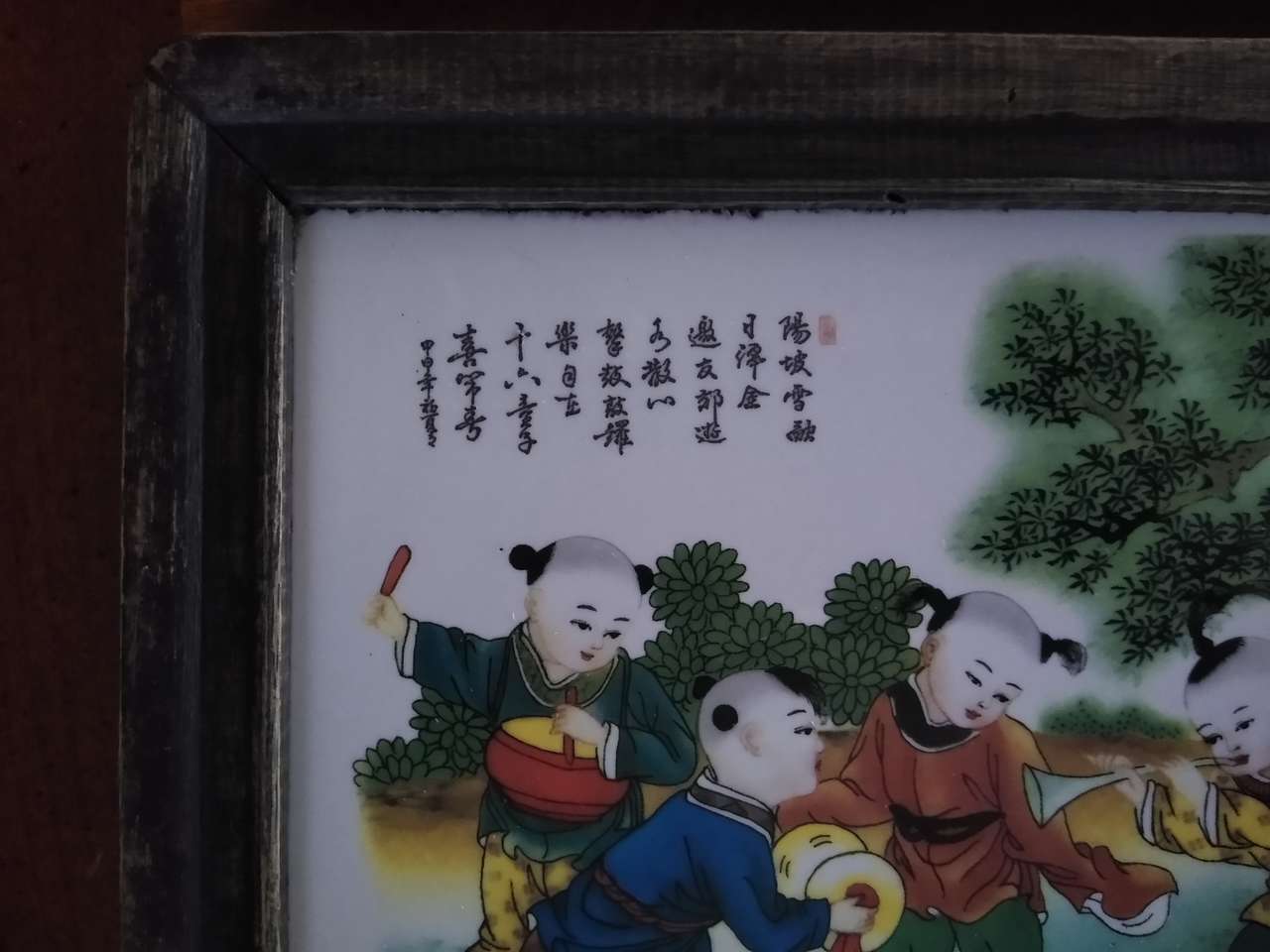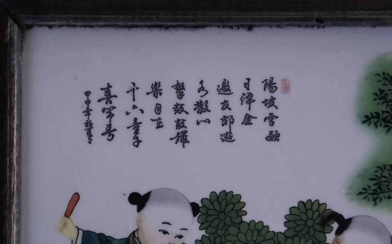 There are two porcelain paintings, about 50 years old, one is seven children celebrating the Lantern Festival, the other is sixteen children celebrating the New Year.