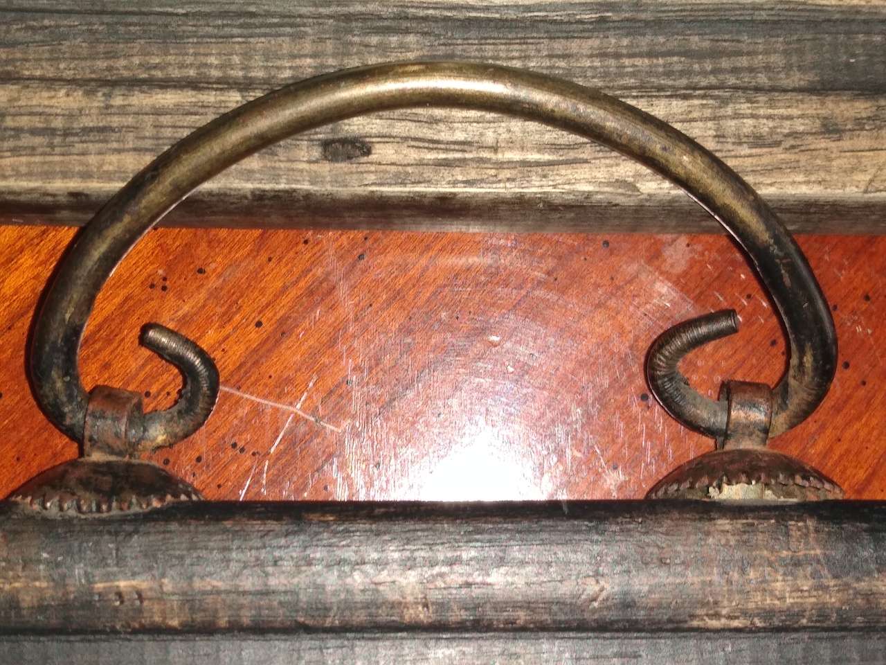 The dimensions are: 8 inches high and 22 inches long. The hook is made of copper, all good products.