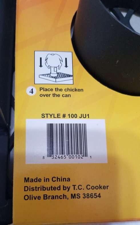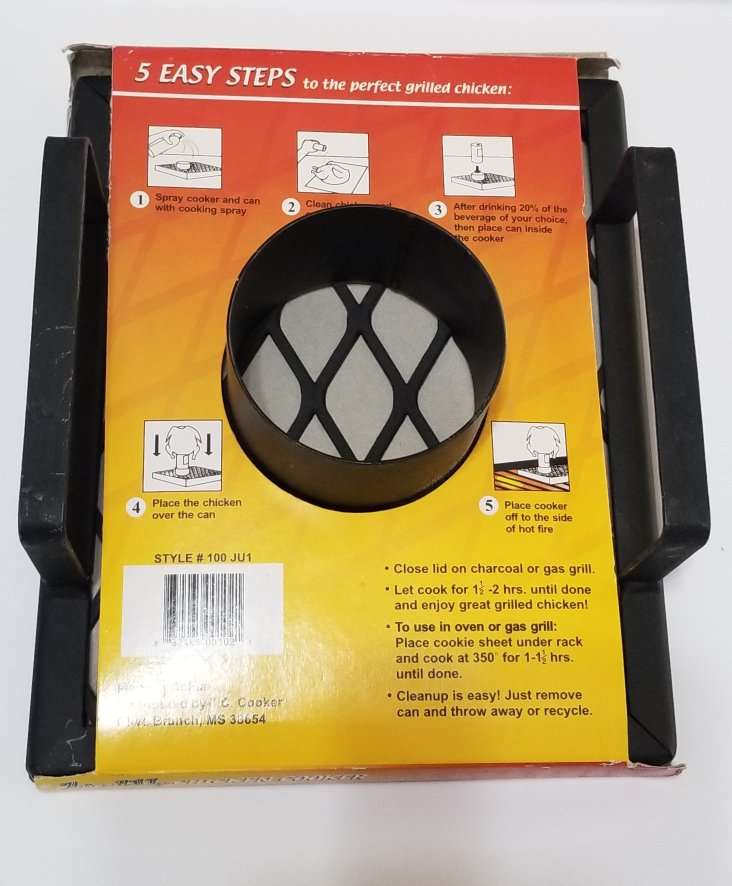 This juiced up chicken grill helper, let's you choose your beverage of choice to cook into your bird. (Must be a canned beverage) new in package. No holds or deliveries. On other sites. 58