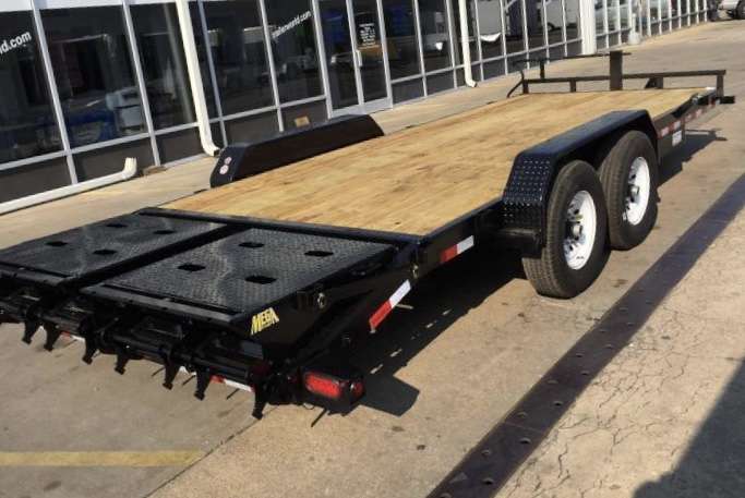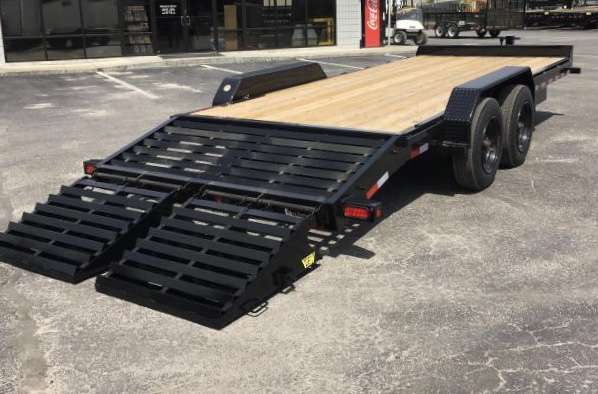 I am renting a 22' flat bed. It is 83" wide between the fenders making it great to haul any size vehicle or compact construction equipment. It has a dual axle with a tow rating of 14K.
