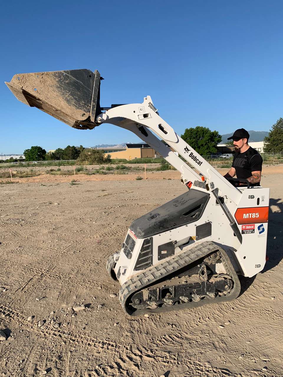 Bobcat MT85 mini skid steer loader. Only 36" wide. Great for small projects and can fit through most any narrow gate! Save money and save your back! This small size skid steer has surprising power and can do most everything a bigger skid can do.