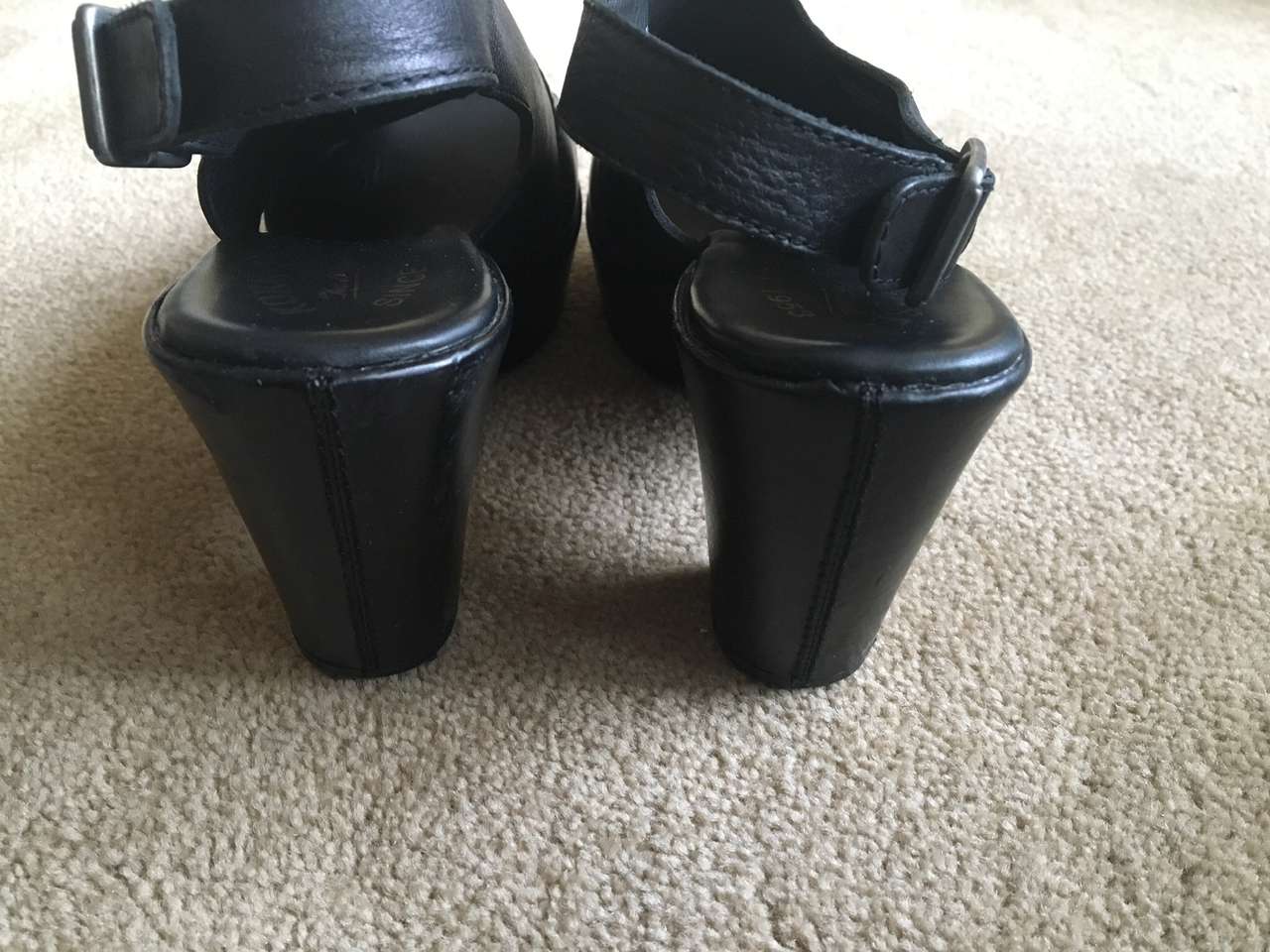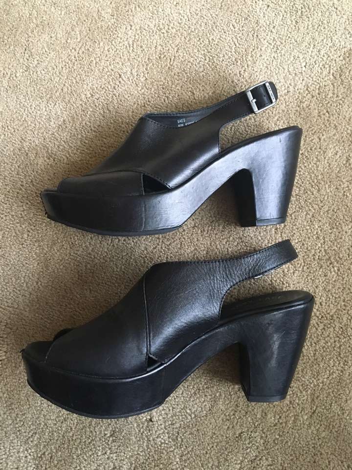 Kork-Ease black platform sandals, women’s size 9, EU 40.5. Genuine leather upper, wrapped platform, adjustable buckled sling back. 3 1/2” heel. Excellent condition. Text if interested. Cash or Venmo.