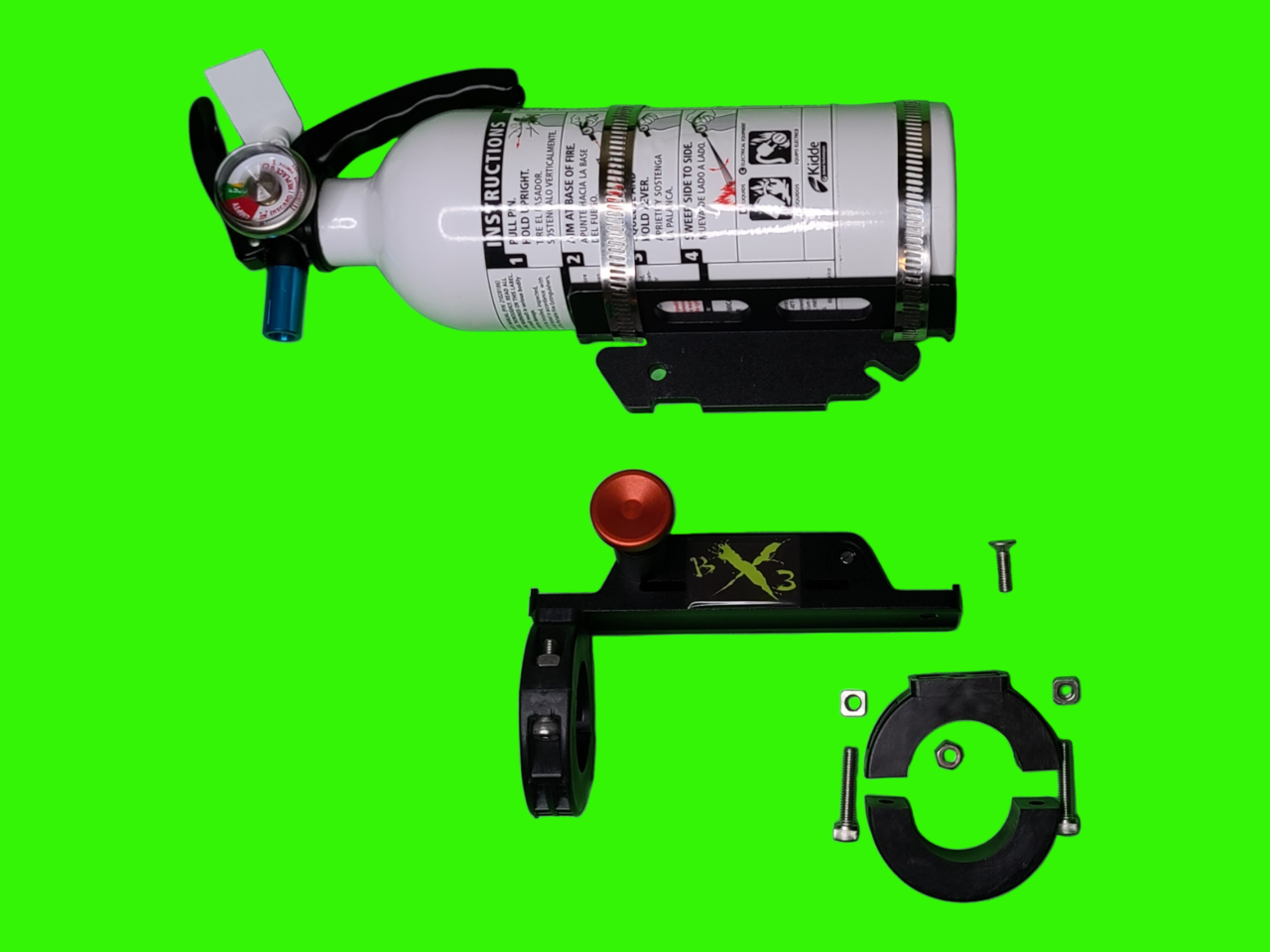 Quick release aluminum fire extinguisher mounting bracket and bottle with no scratch clamps $90. FREE SHIPPING. Sizes 1-1/2", 1-5/8" 1-3/4", 1-7/8", 2"