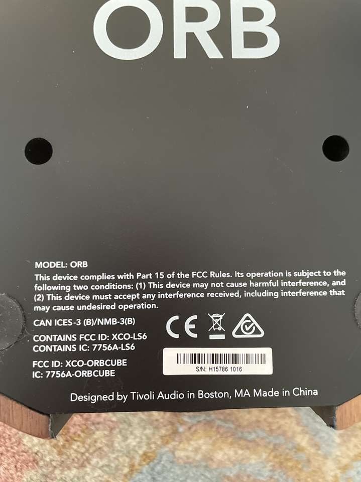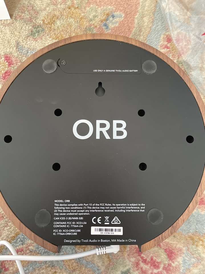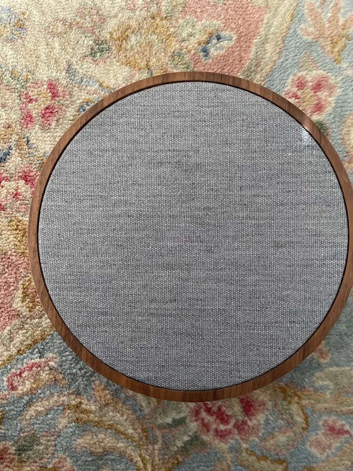 These retail for $249. I have 3 available — only one stand. Hung on the wall like a painting or placed in its stand like a sculpture, the ORB is an object of art. The high-quality Gabriel gray fabric and real walnut wood cabinet mix together elevating the ORB to more than a speaker and heightening your home’s décor.