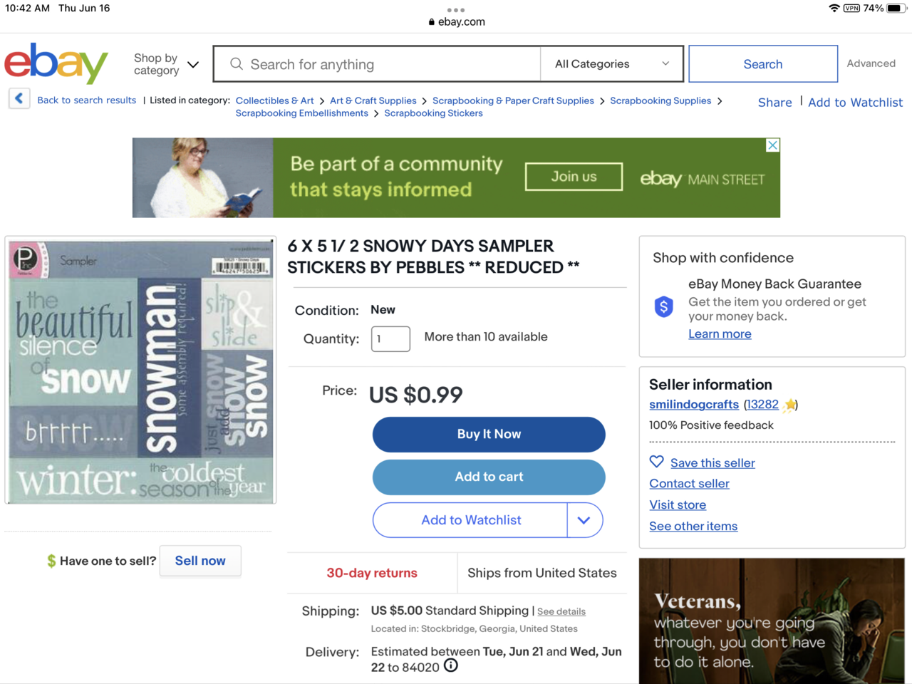 Snowy Days Scrapbook Kit by Pebbles Inc. NIP. Comes from a smoke and pet free home. 2 available. Just 1 sheet of Snowy Days Sampler Stickers on eBay is $6.00 with shipping. $10.00 for each set.