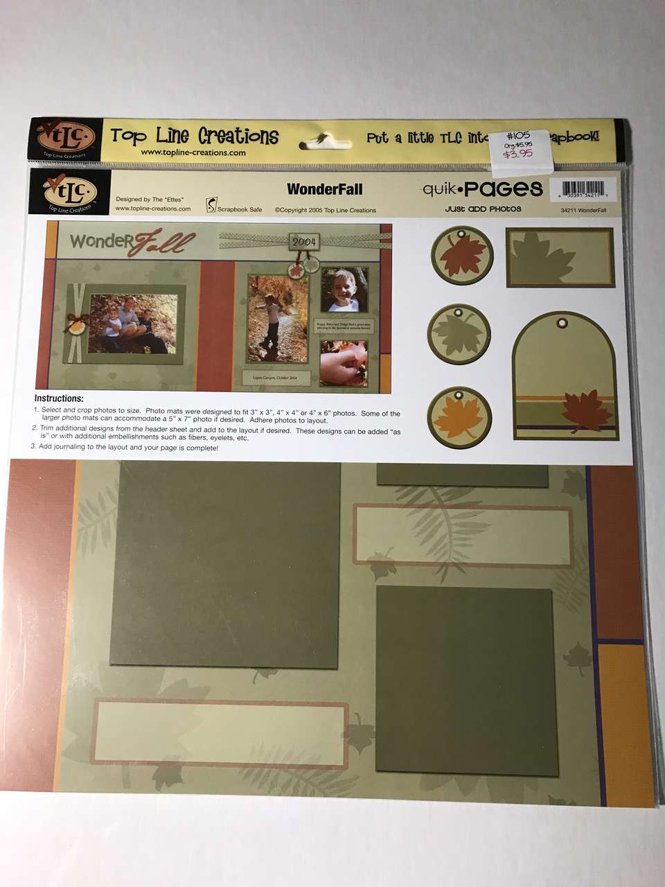 3 Packages of Top Line Creations quik Scrapbook pages. 2 pages in each package and header sheet. $5.00