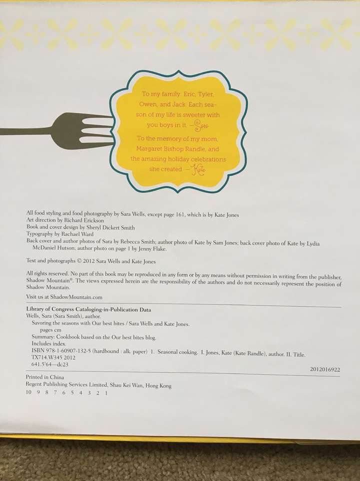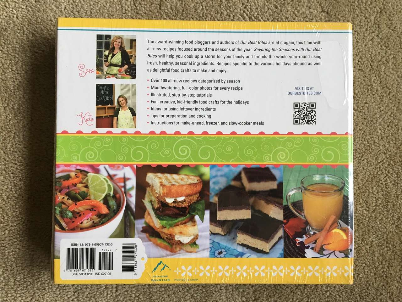 NEW (sealed in plastic) Savoring the Seasons with Our Best Bites cookbook, by Sara Wells and Kate Jones. New, unopened condition (inner photos from another copy). Spiral-bound hardback. Wonderful cookbook full of accessible, delicious recipes, organized by season. Published 2012 by Shadow Mountain. 264 pages. Text if interested. Cash or Venmo.