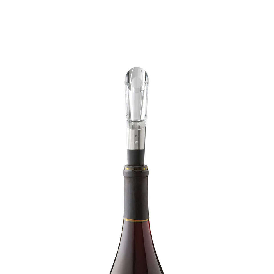 The set features a matte black finish and stainless steel accents for a contemporary look imply place one of the 2 included stoppers onto the top of the wine bottle and pump. This suite of wine accessories store neatly in the charging base, making it a perfect gift for wine enthusiasts!
