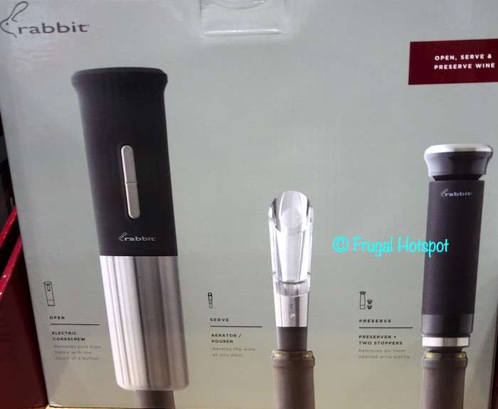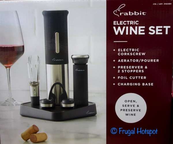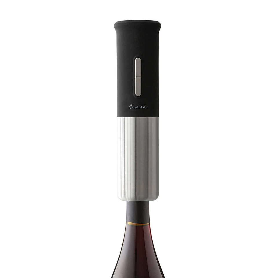 Rabbit Electric Wine Opener Set Accessories Included:-Electric Corkscrew-Charging Base-Foil Cutter-Aerator/Pourer-Preserver-2 StoppersProduct Details:-Open, serve, and preserve wine-Matte black with stainless steel accents-Corkscrew works on all cork types, including synthetic corks-Opens 30+ bottles