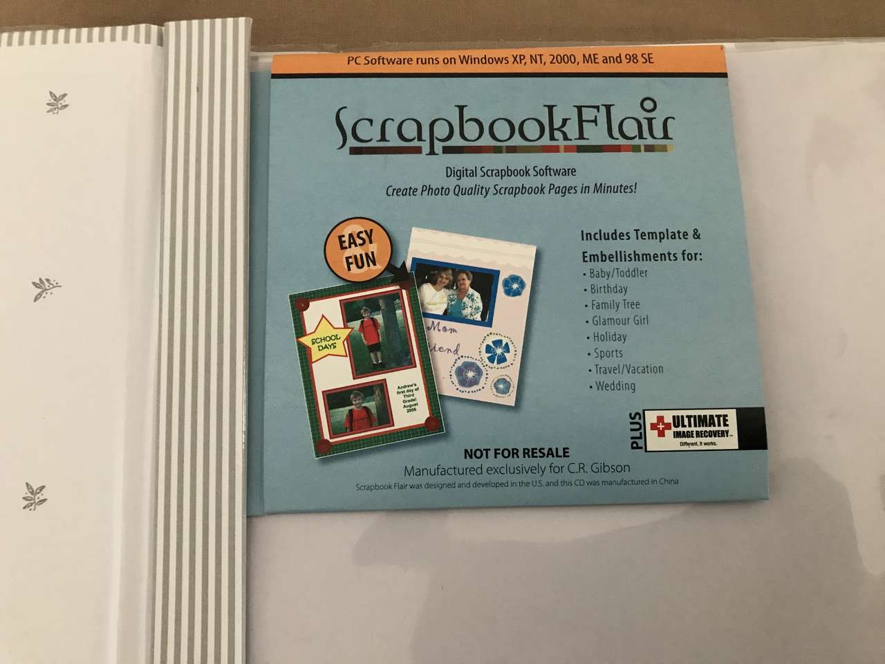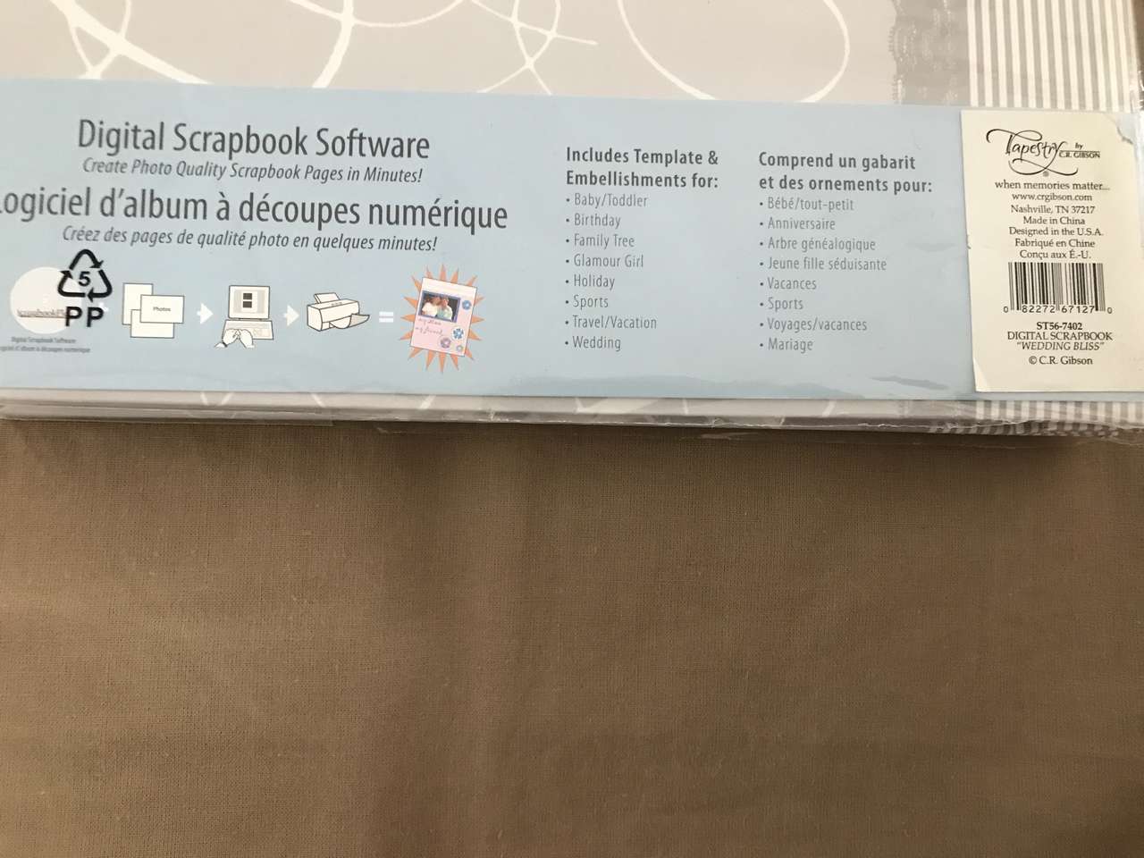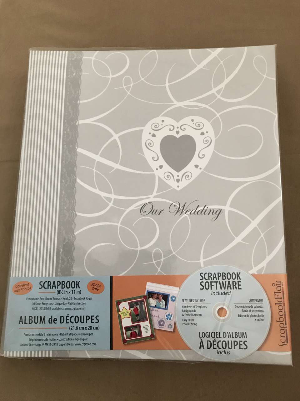 8 1/2" x 11" Wedding Bliss, Tapestry by C R Gibson. Comes with 10 sheet protectors and software disc with hundreds of templates, backgrounds and embellishments. $10.00