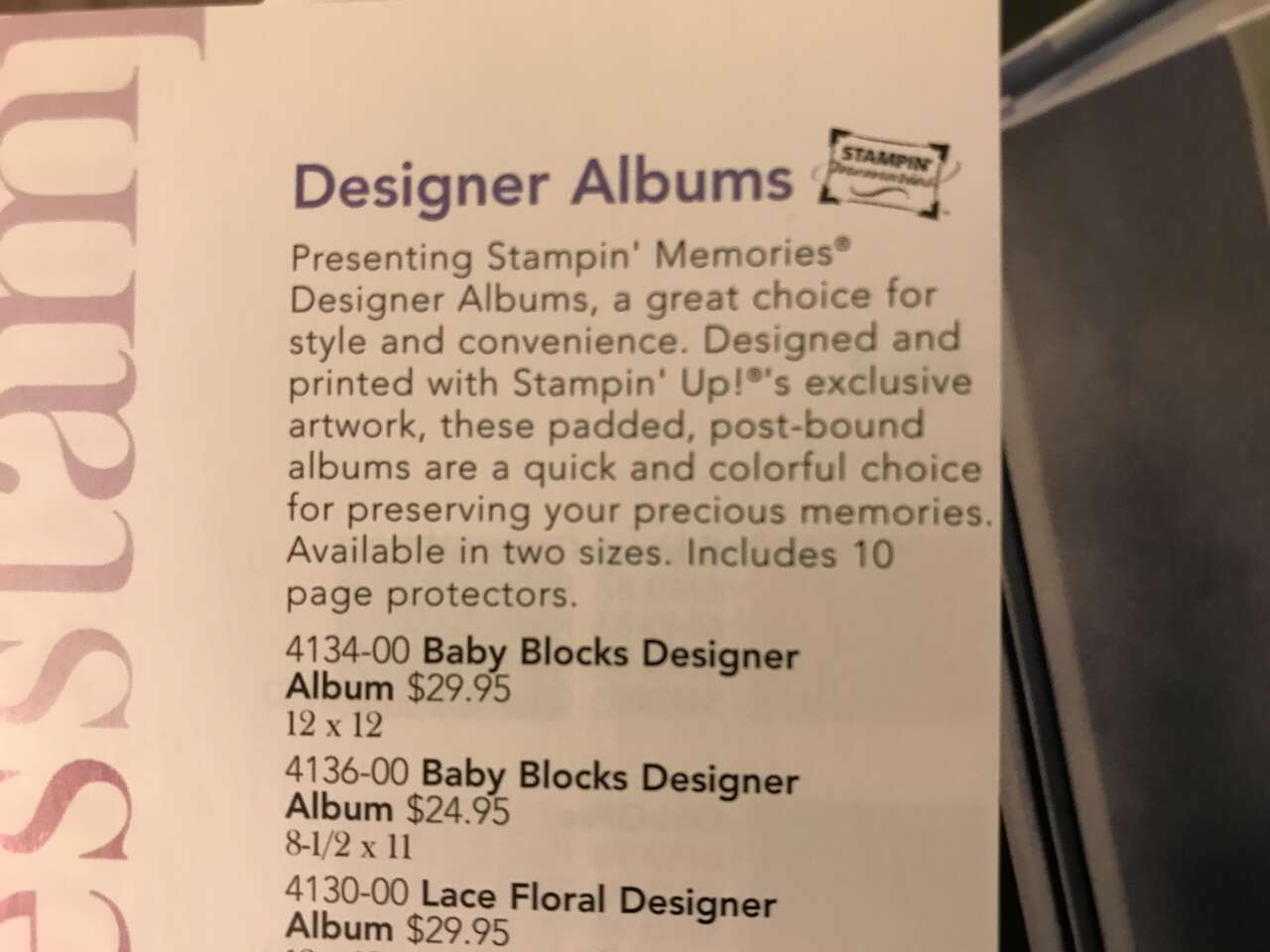 11” x 11.75” Baby Blocks Designer Scrapbook Album with Clear Sleeves, New in Packaging. The size of the sleeves are probably 9” x 10” approximately. I cannot give the exact size though because it is sealed. 4th and 5th pictures are from the Stampin Up catalog. Original price was $29.95. $10.00