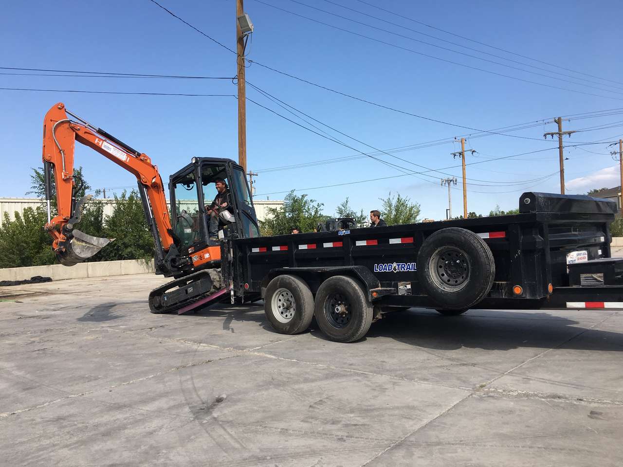 Dump trailer measures 7x 14 and has 14k rated axels. Machine loads and tows inside of the dump trailer! I have dump trailers with 4' sides and 2' sides.