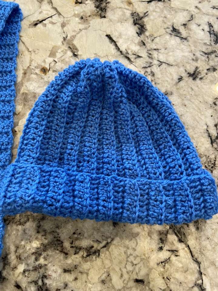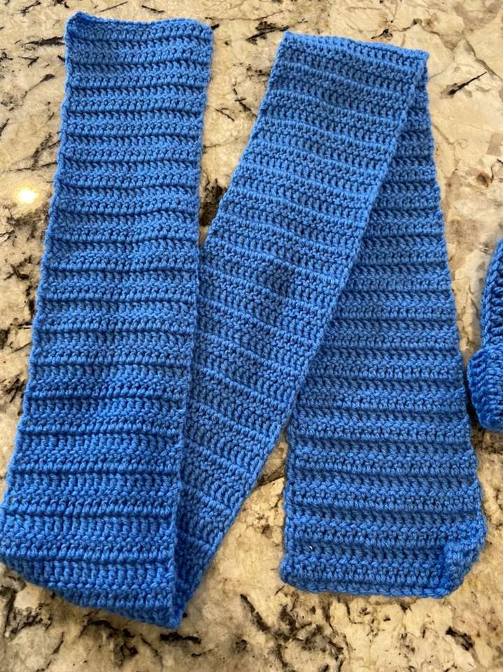Handmade light blue crochet 58” scarf and hat. I have other color crochet scarf and hat available.