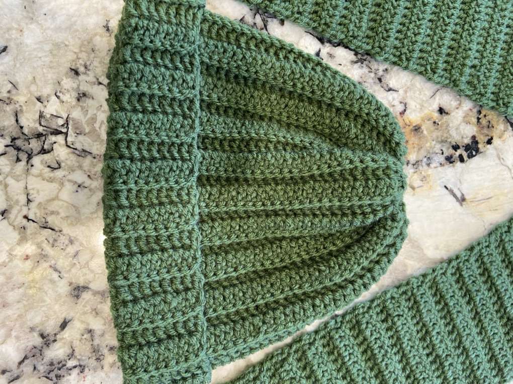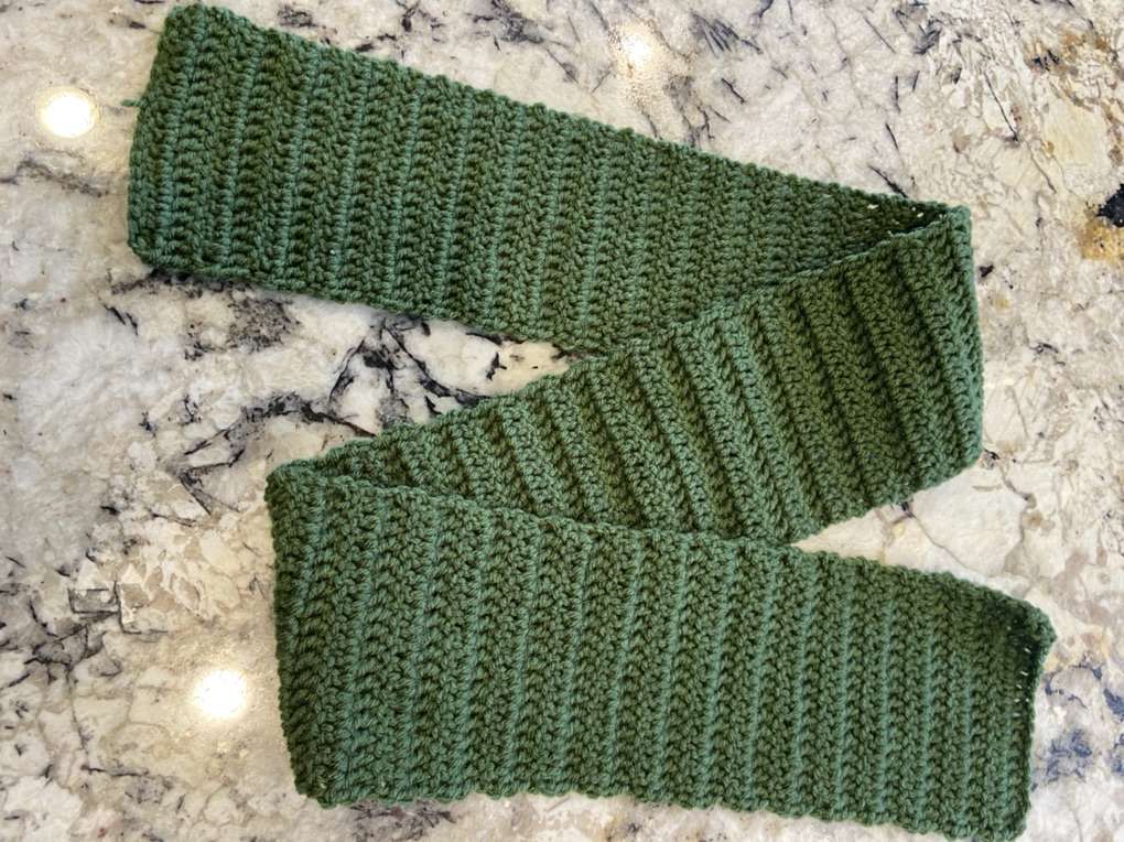Handmade green crochet 48” scarf and hat. I have other color crochet scarf and hat available.