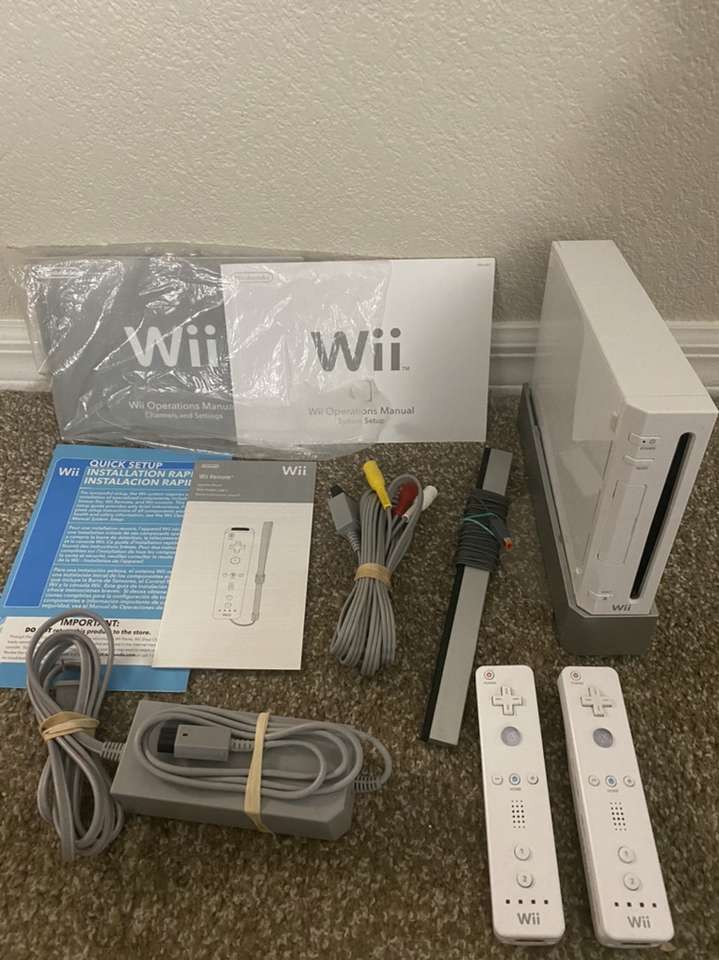Add a Wii console, all previous data, gameplay, and mii’s have been erased. It includes Netflix, Hulu, Amazon and YouTube. Comes with power cord, av cable, sensor bar stand, and 2 Wii remotes for $150