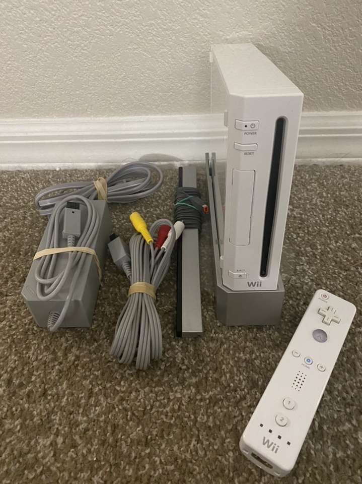 Add a Wii console. All the previous data, gameplay, and mii’s have been erased. It includes Netflix, Hulu, Amazon and YouTube and comes with power cord, av cable, sensor bar, instructions, and Wii remote for $130