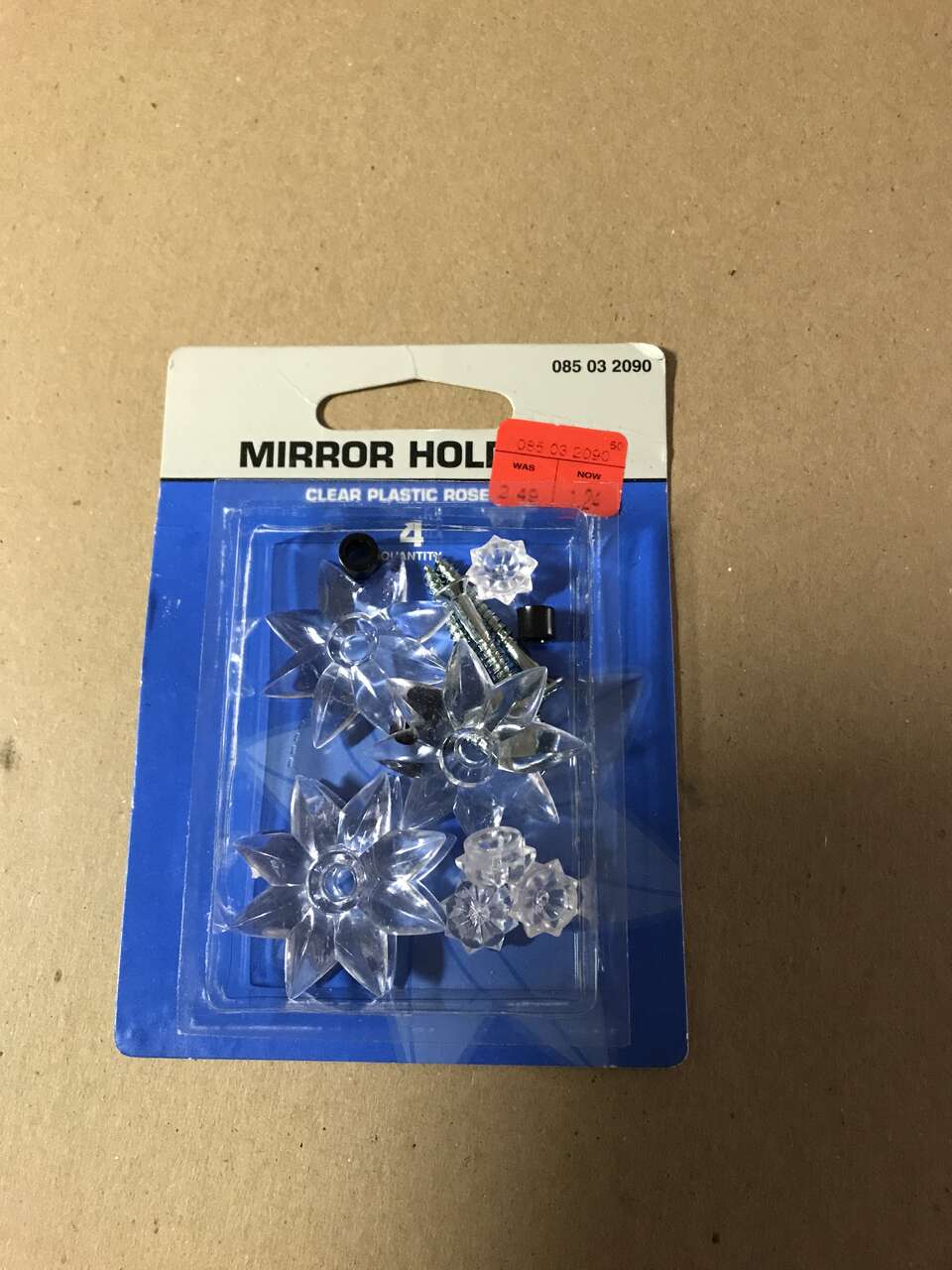 Pack of 4 Rosette Rose Star Flower Mirror Holders Holder Hillman 122200. 1 black plastic sleeve is missing. $5.00