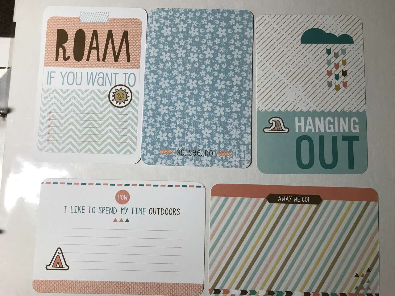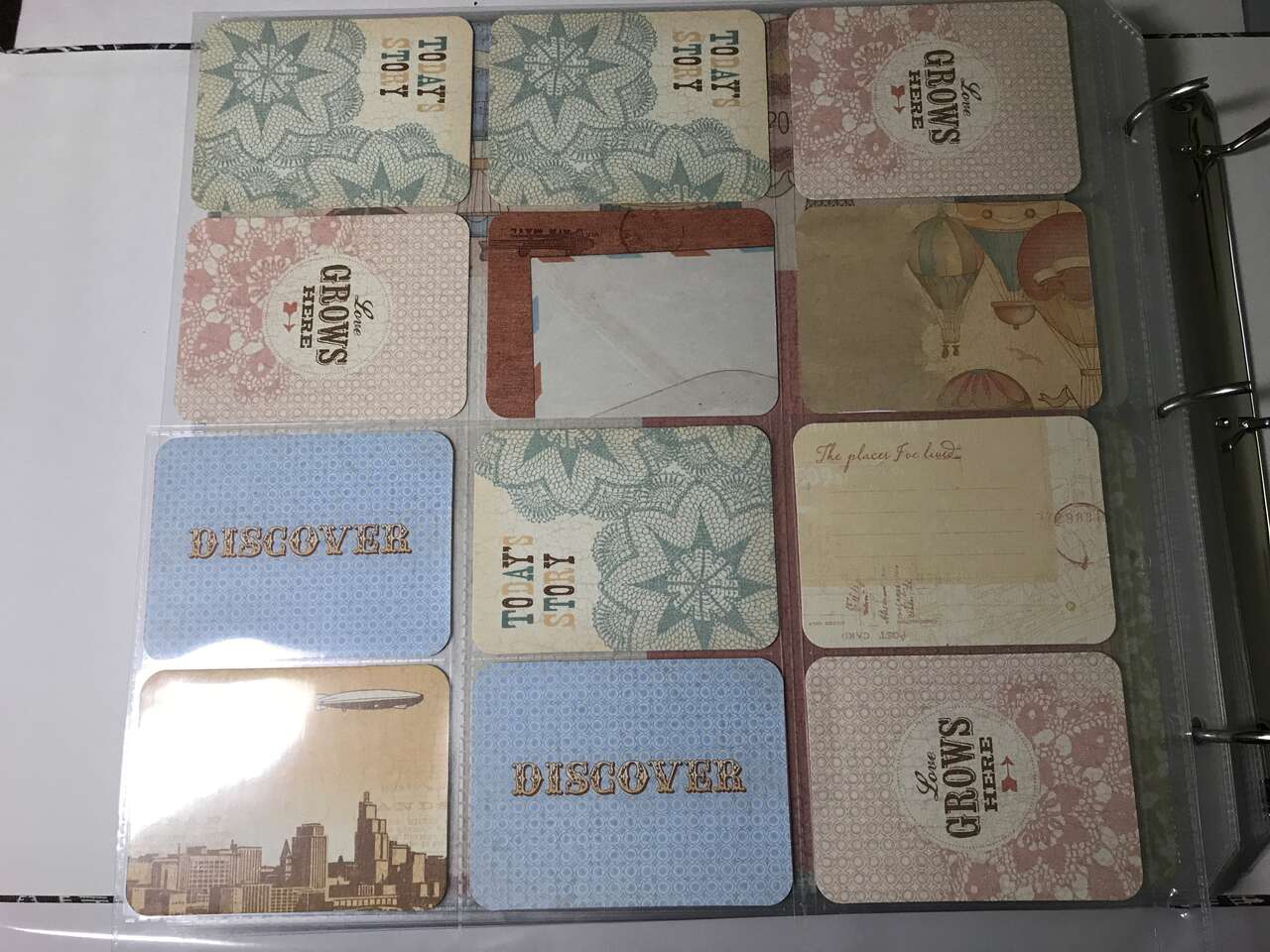 2 Sheets 12"x12" reversible Days Like This, 101 3" 4" cards, 53 4"x6" cards, from CTMH Skylark (not all of the card are pictured on this set)
