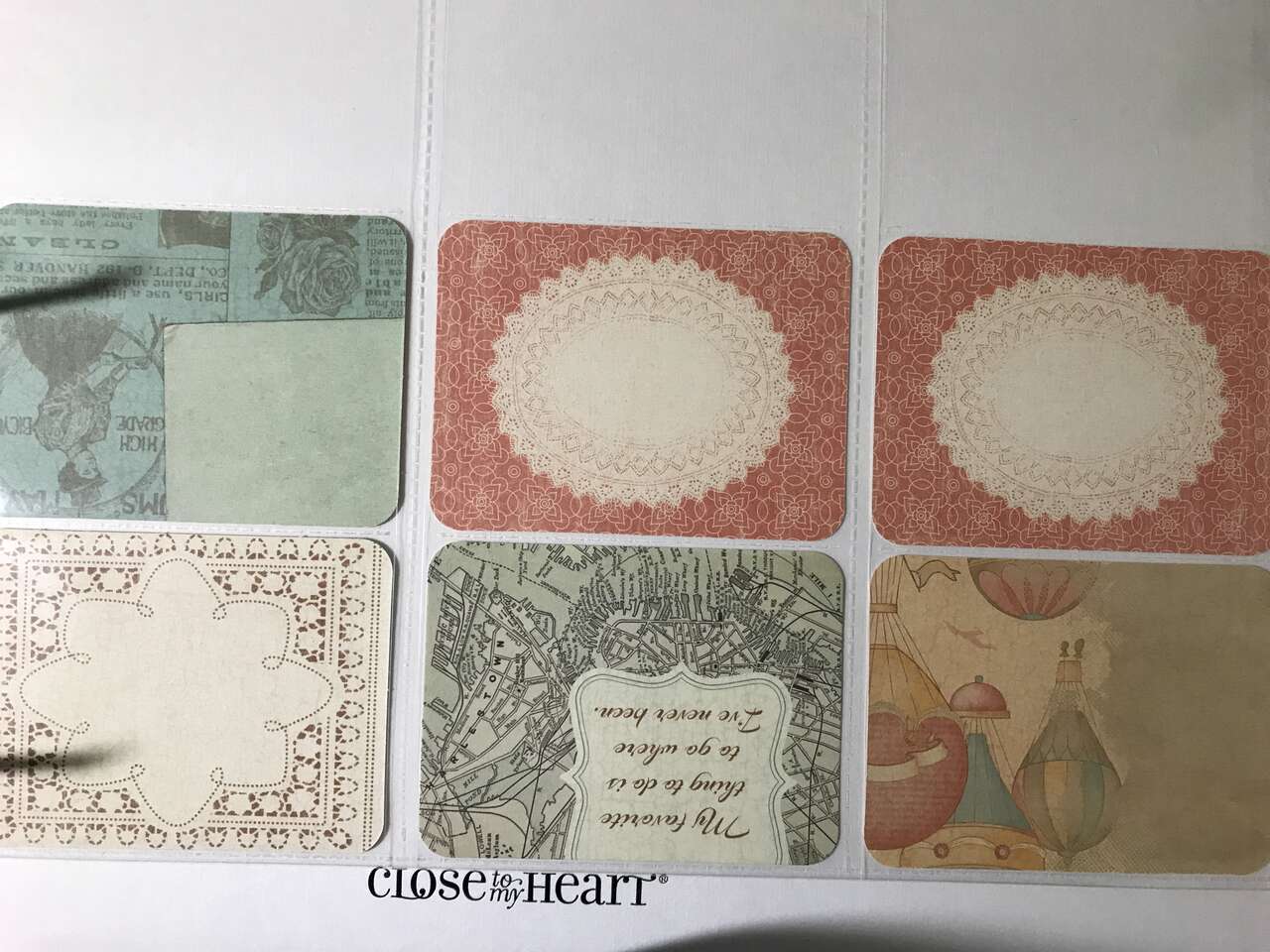 2 Sheets 12"x12" reversible Once Upon A Time, 18 3"x4" cards, from CTMH Baloon Ride (the last 2 pictures are examples to make cards with any of the cards on this listing)