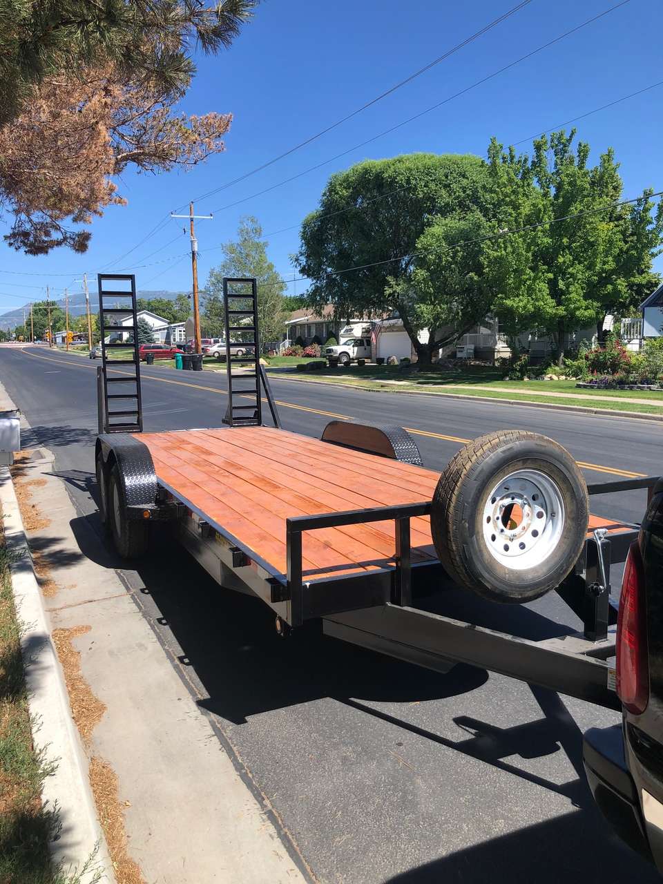 For rent is a nice 20 foot car hauler heavy duty double axel flatbed trailer. It has 14,000 lb axel rating so it can hold up to 10,600 lbs on it.