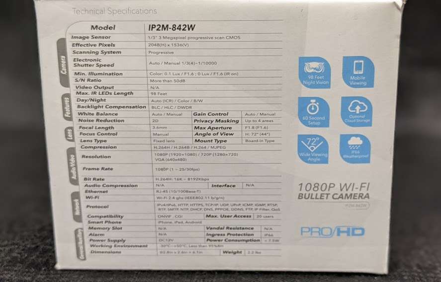 VenmoAmcrest IP2M-842W ProHD Outdoor 1080P Wi-Fi Wireless IP Security Bullet Camera, IP66 Weatherproof, White