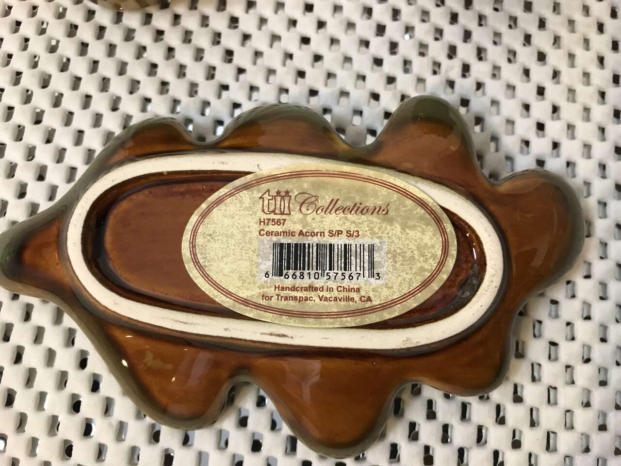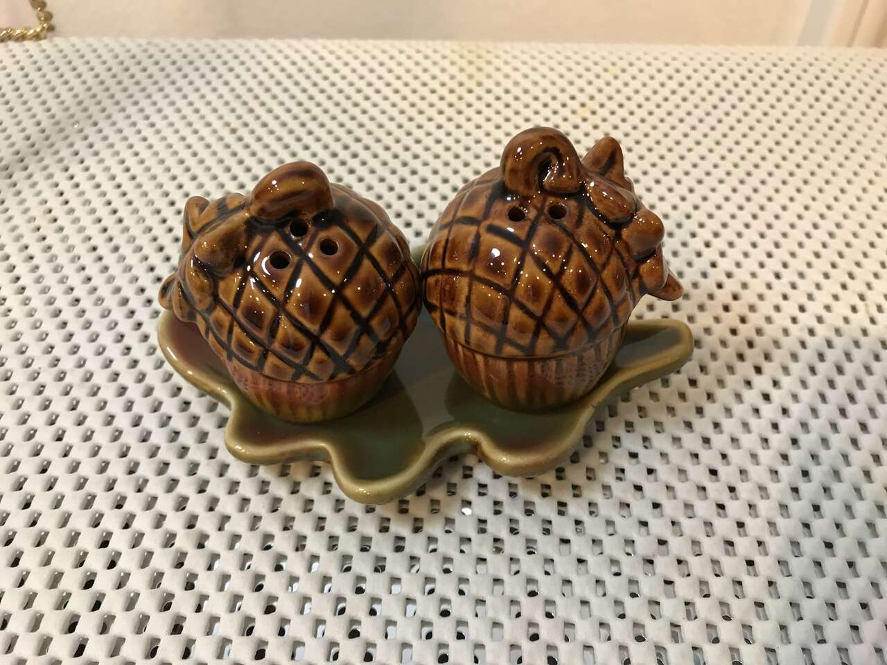 Thanksgiving Turkey Salt and Pepper Shakers and 2 Thanksgiving Wall Plaques, New and 1 Recipe Card Holder, used and TII Collections Acorn Salt and Pepper Shaker on Leaf Plate, New. $20.00