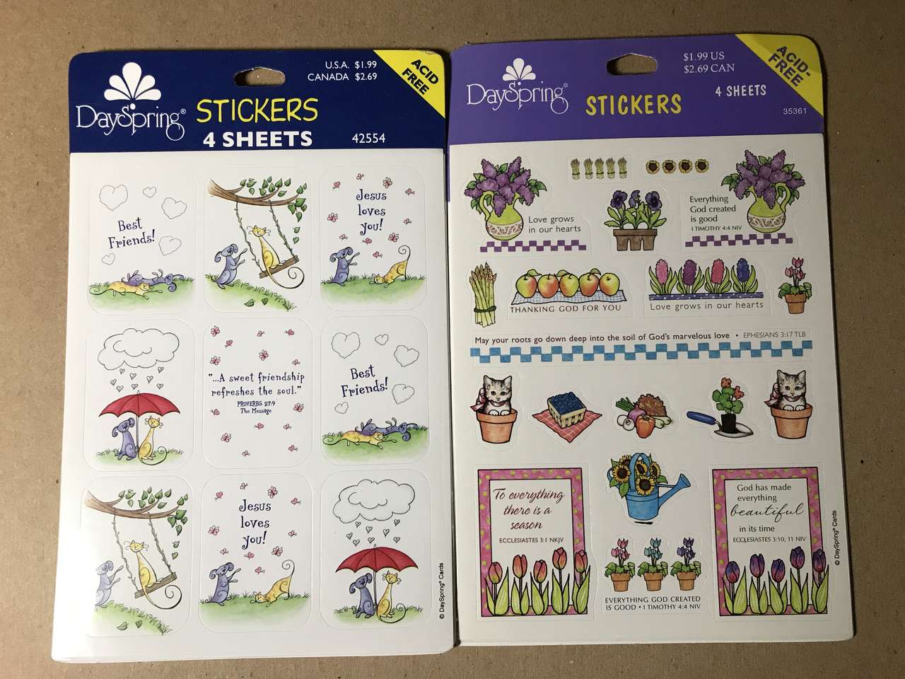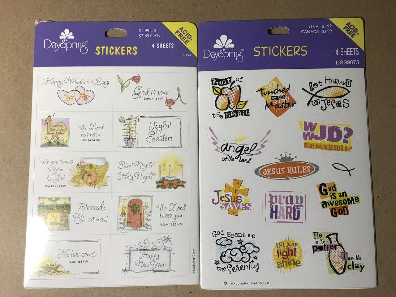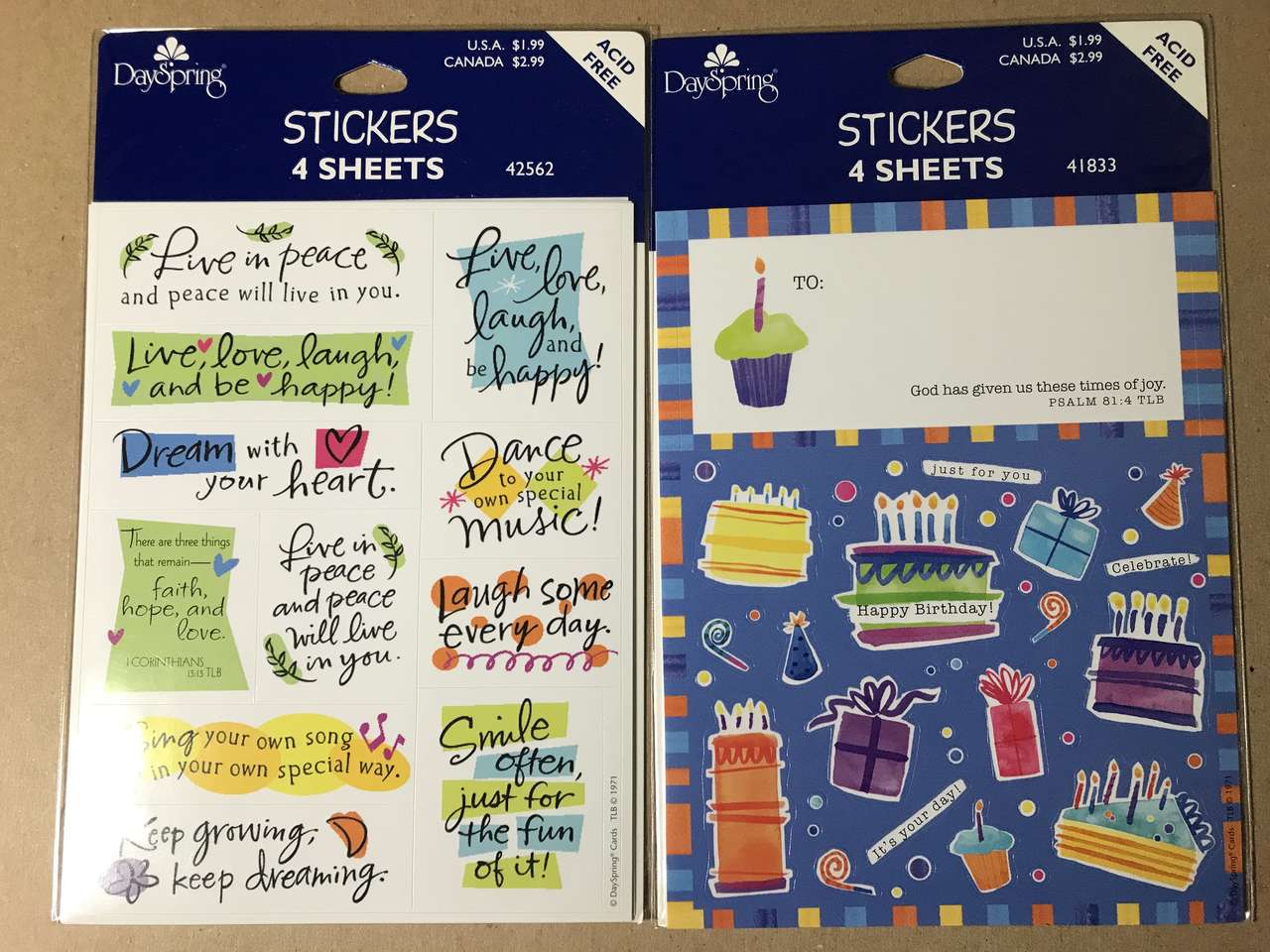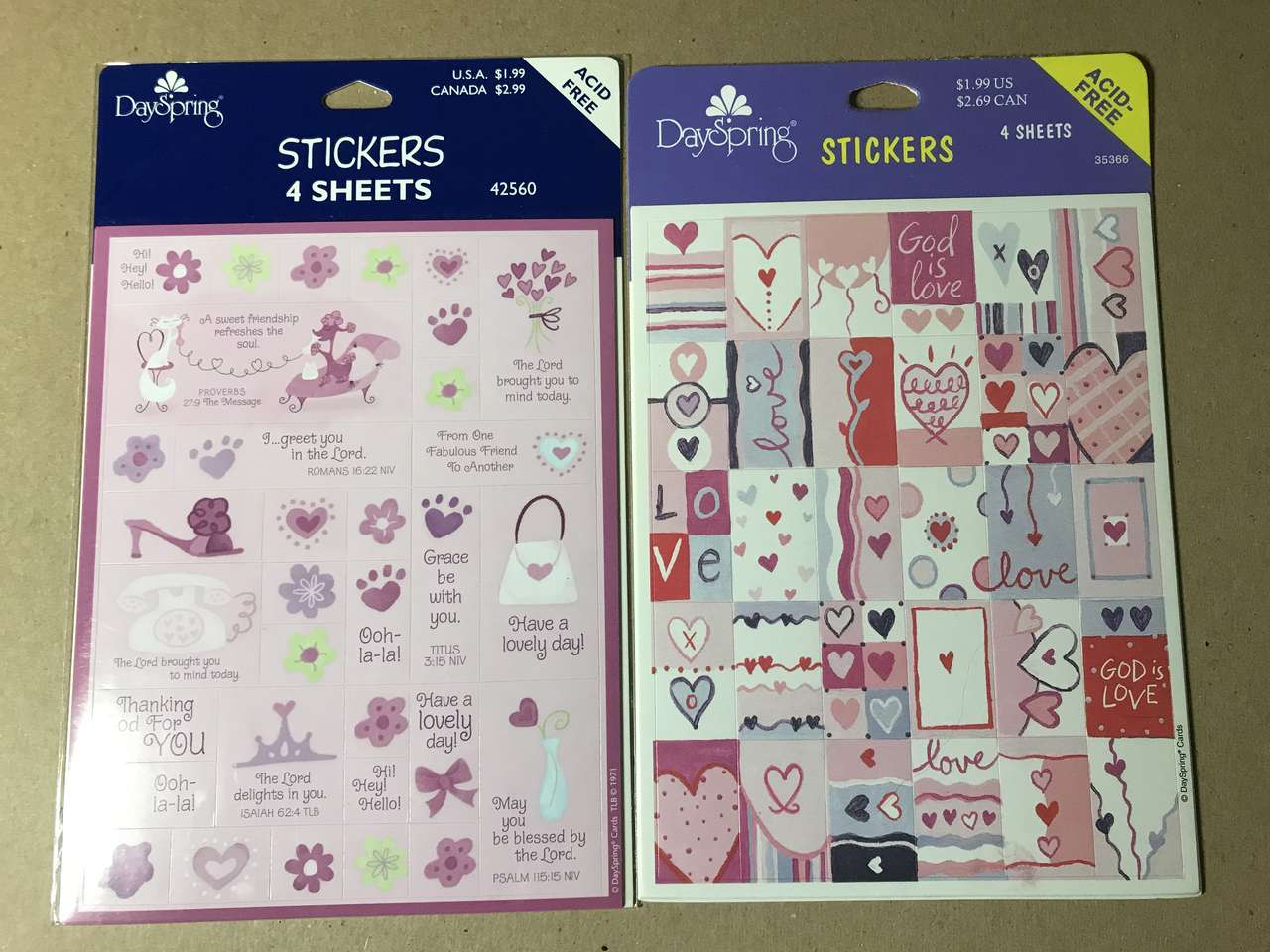 DaySpring Stickers, Gold Foil Hearts - 2 sheets per package. See list below for other Stickers. Choose 4 packages, cash only. Minimum $5.00 purchase.