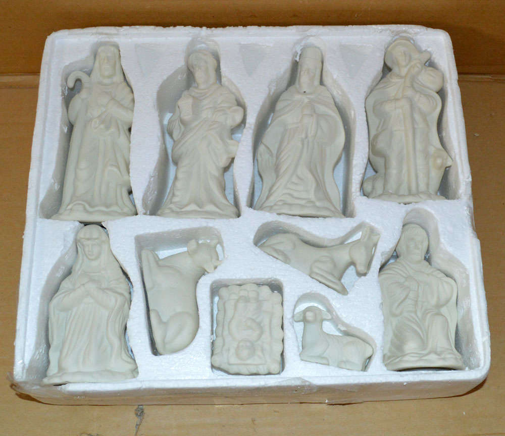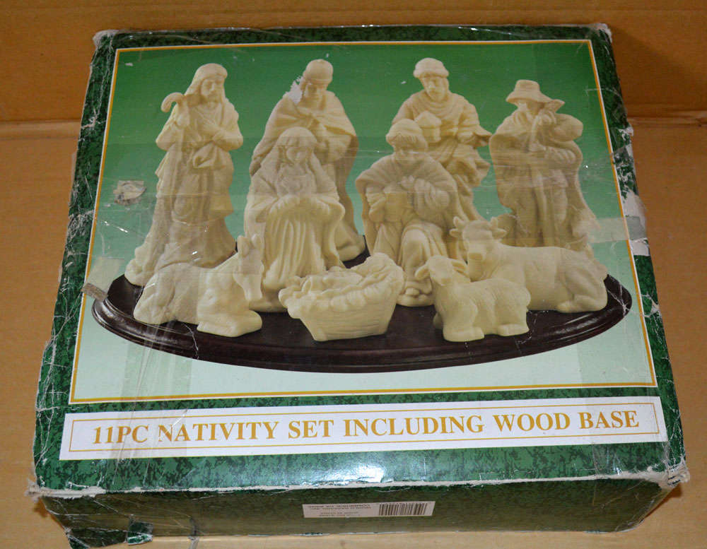 Used Nativity set. Set is in good condition. the box is in poor condition. Set is missing the wooden base.