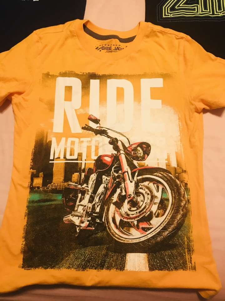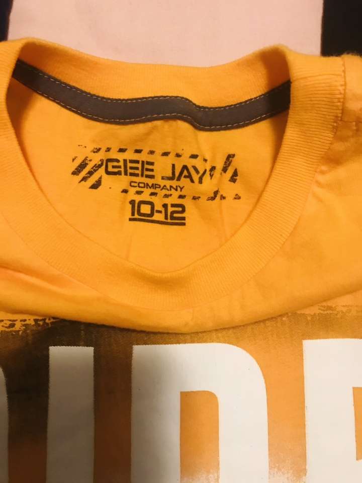 T-Shirts in blue, black, and orange. Nice T-Shirts in very good preowned condition. All are barely worn, my children have fast outgrown them. $8 for all 3 Sizes: L(10-12) AMAZING on the black T-Shirt is glowing in the dark Contact: Feel free to text me if you have any other questions. Text only, pls.