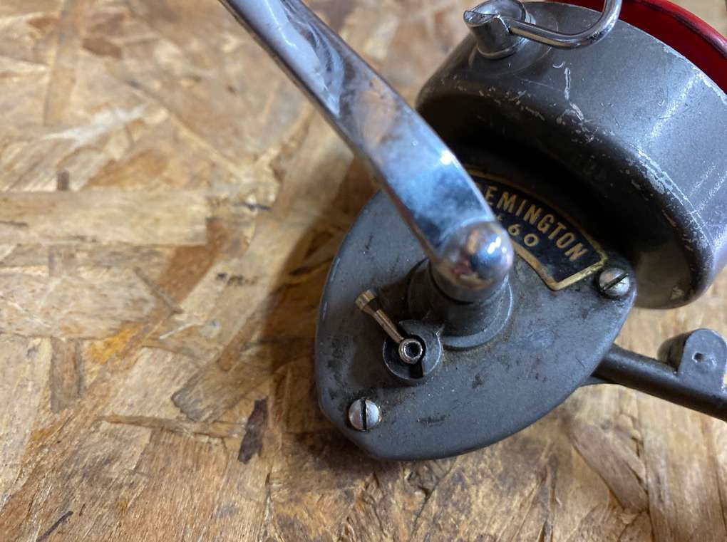 Vintage Remington Fishing Reel. Used condition, but everything works. Casting near directional control lever is damaged (see photo).