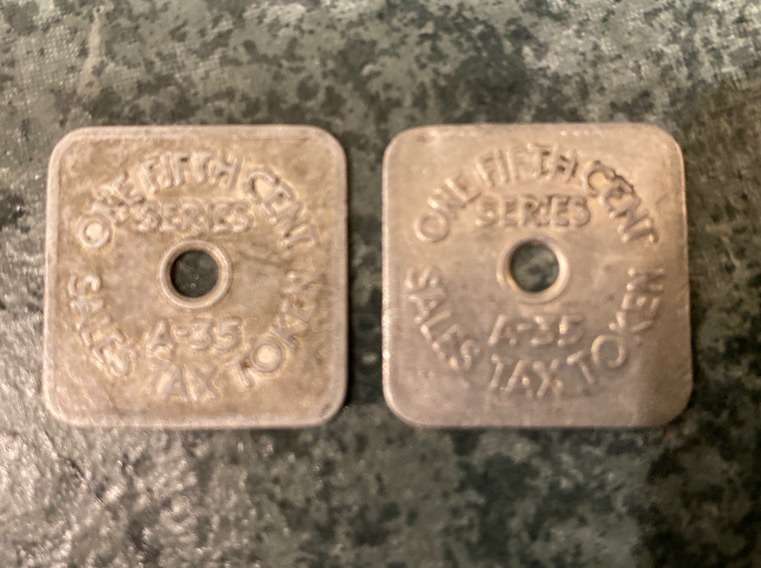 Venmo2 vintage Colorado sales tax tokens. One token is in very good condition, the other is fair. Price is for both.