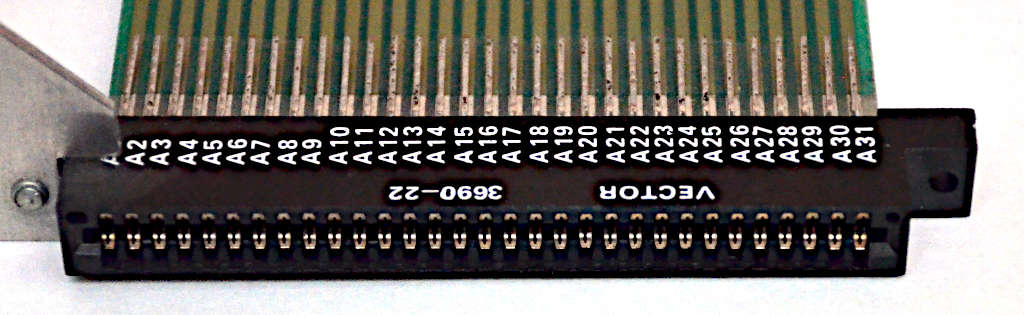 This is a Vector Electronics 3690-22 printed circuit board that brings out a base board connector so that devices can be tested with easy access to the data and control lines and the device itself.