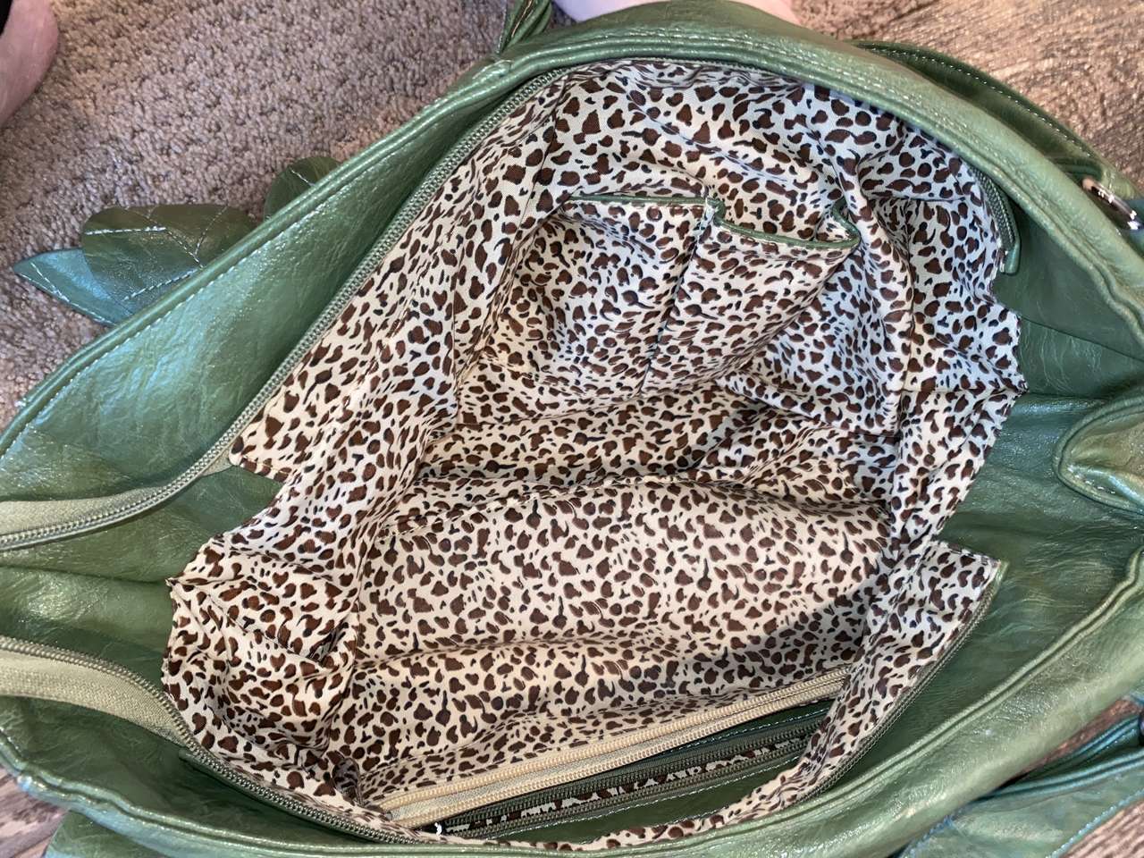 VenmoThis is a big purse that will hold anything! It has a lot of different pockets with zippers so you can organize everything in it. Has fun Leopard print in the inside. In great condition!