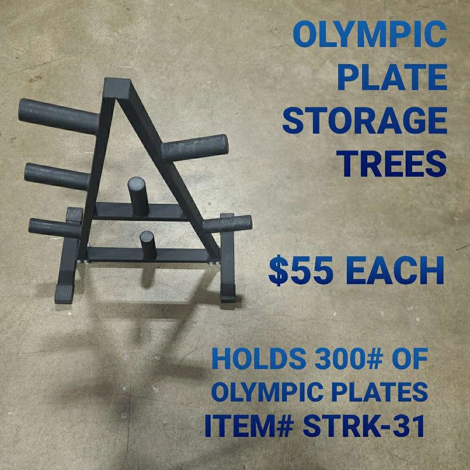 Storage solutions for Regular Olympic Plates and Olymlic Bumper Plates start at $85. Text for Current Options.
