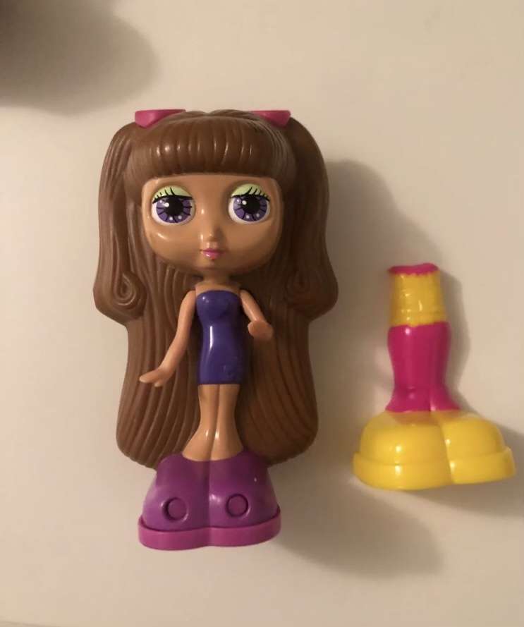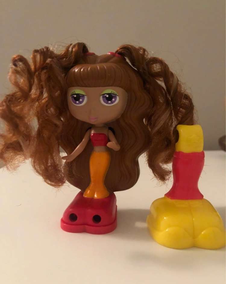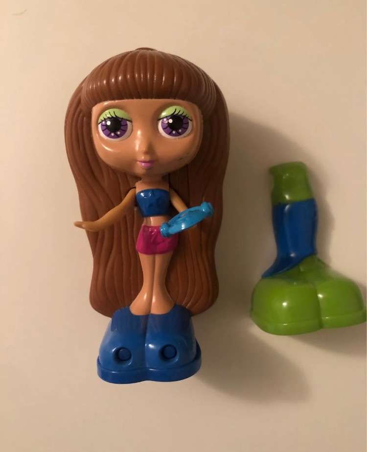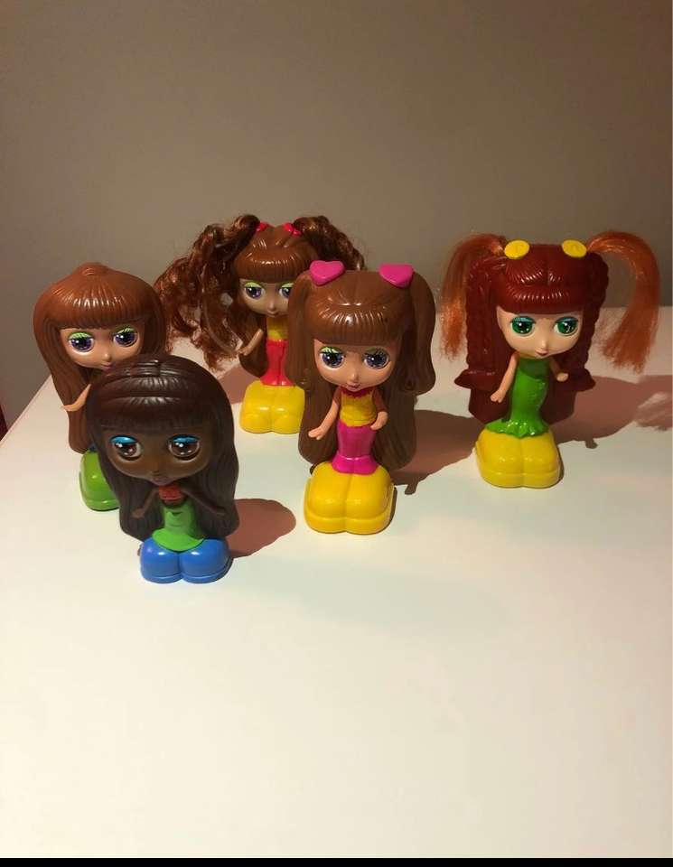 This is a lot of 5 Mattel Diva Starz dolls from McDonald's in 2001. One has a secret mirror in her hair, and the other four have mix and match snap-on fashions. Two have real hair in good condition. They have some scuffs and scratches here and there from play. Please check all photos to see close ups of these. Due to their age, the batteries in the talking ones no longer work. There is a chance that you could replace them, but I'm not sure.